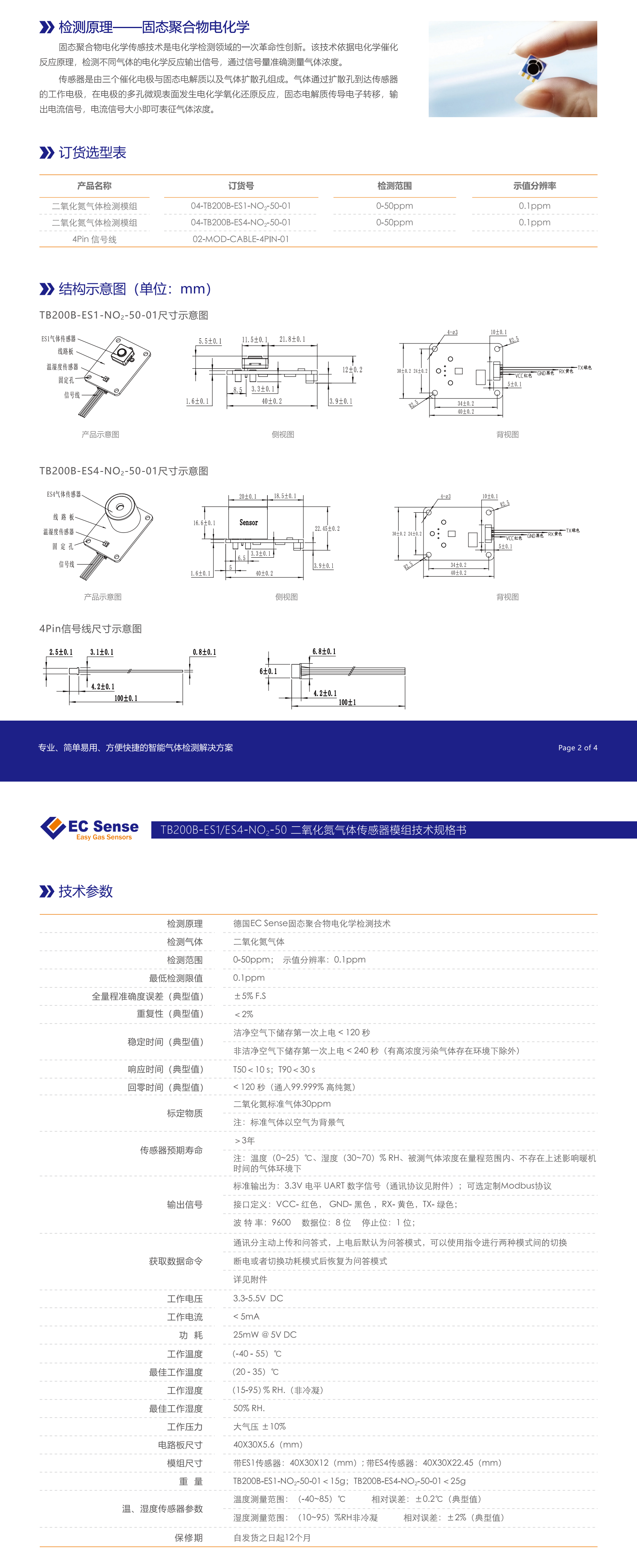 EC Sense TB200B-ES1/ES4-NO2-50 二氧化氮傳感器模組