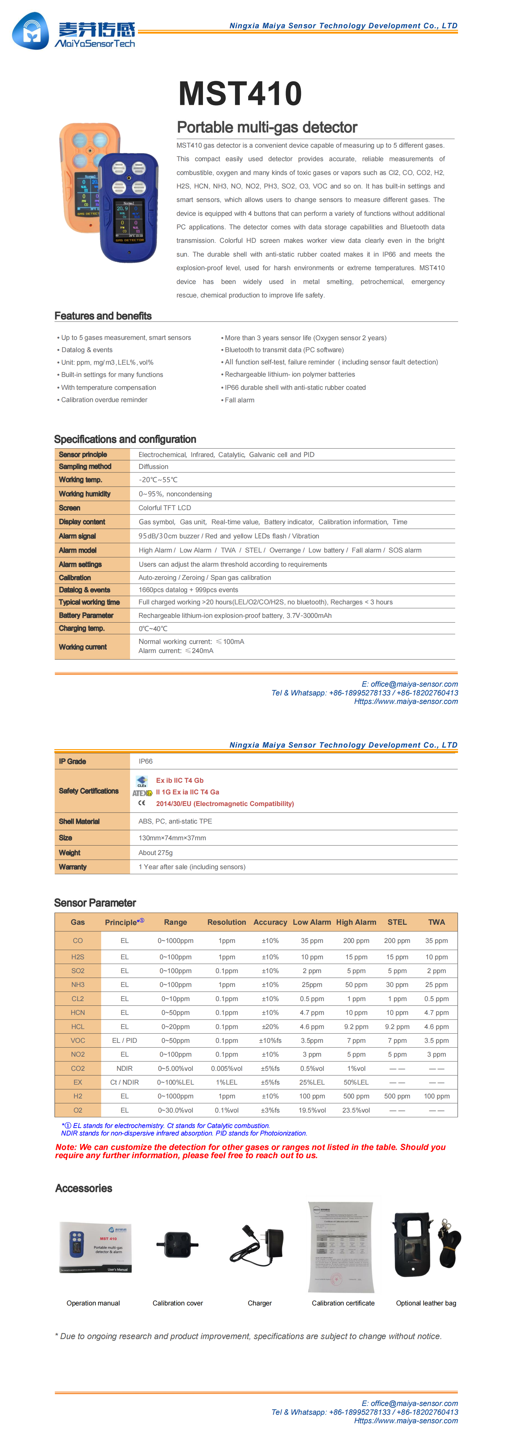 The portable gas detection&Alarm device is a personal anti-gas detector that can continuously and simultaneously detect a variety of gas concentrations. TFT screen with large color display, up to 4 gas concentrations at the same time, According to the active sensors, the model of the gas concentration display can be automatically adapted. The shell is designed with rubber coated plastic mould,which has good waterproof performance. The detector can meet the requirements of explosion-proof, can be widely used in iron and steel metallurgy,petrochemical, emergency rescue, industrial safety and other industries
