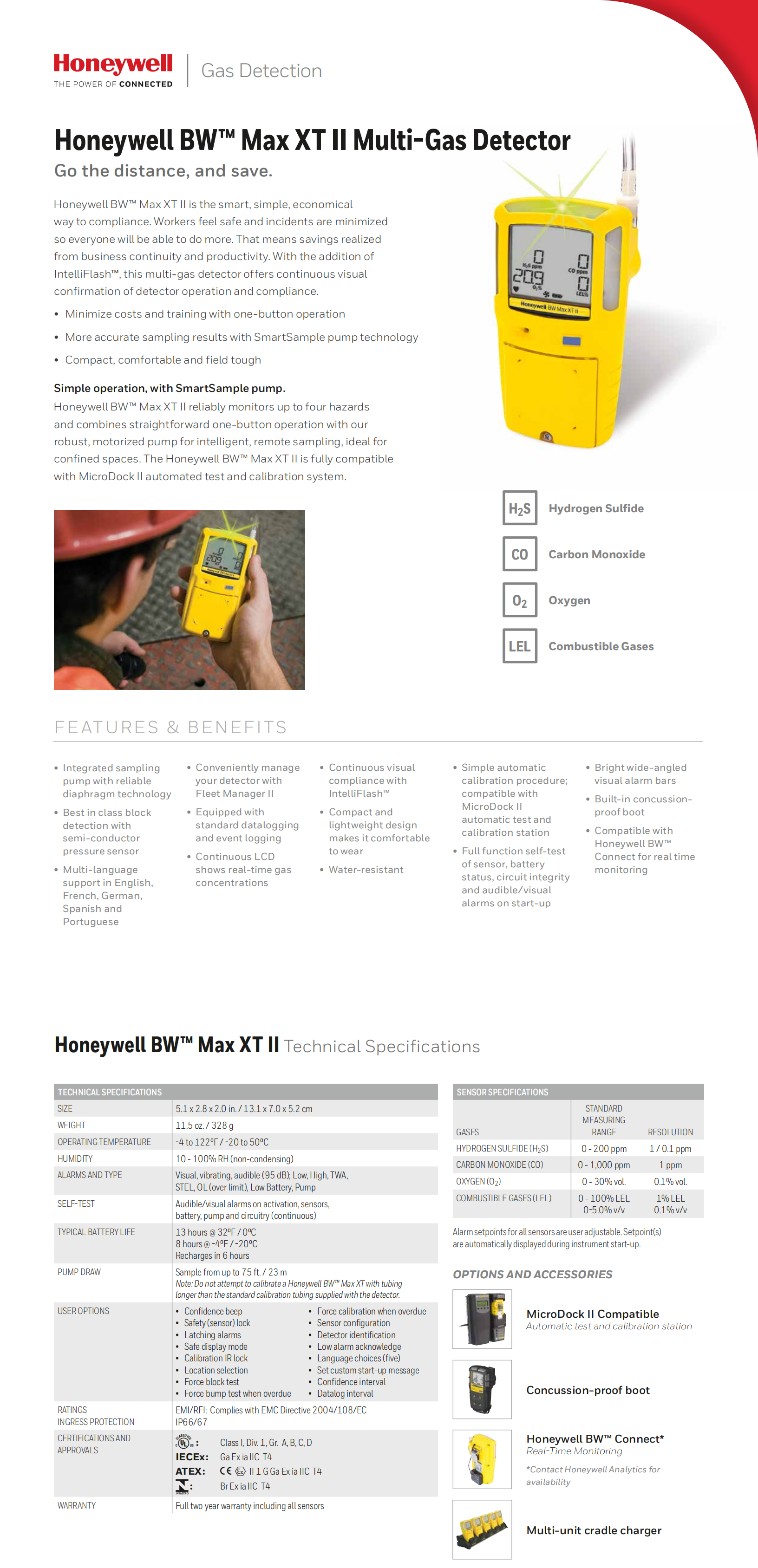 Honeywell BW? Max XT II is the smart, simple, economical way to compliance. Workers feel safe and incidents are minimized so everyone will be able to do more. That means savings realized from business continuity and productivity. With the addition of IntelliFlash?, this multi-gas detector offers continuous visual confirmation of detector operation and compliance.
