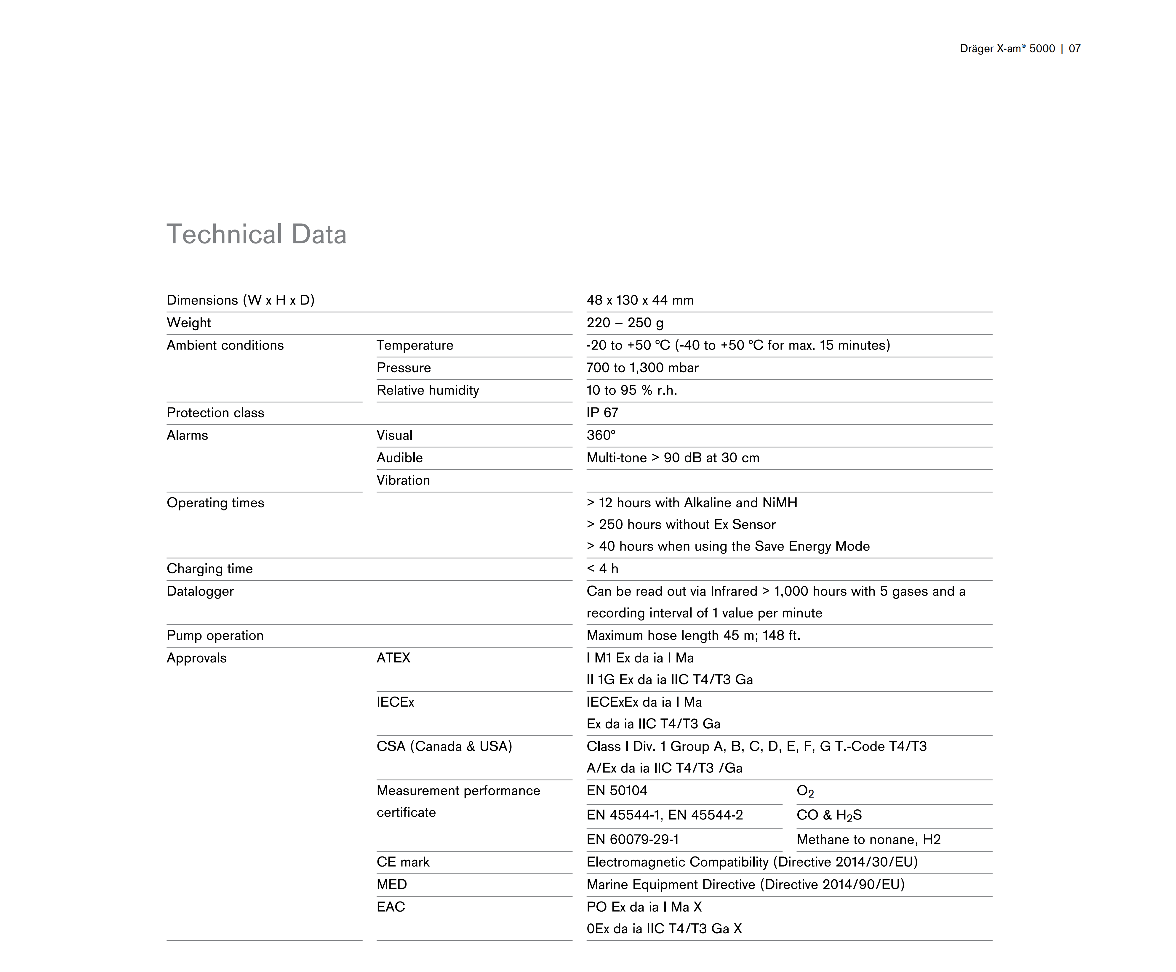 The Dr?ger X-am 5000 belongs to a generation of gas detectors, developed especially for personal monitoring applications. This 1- to 5-gas detector reliably measures combustible gases and vapors as well as oxygen and harmful concentrations of toxic gases, organic vapors,Odorant and Amine.