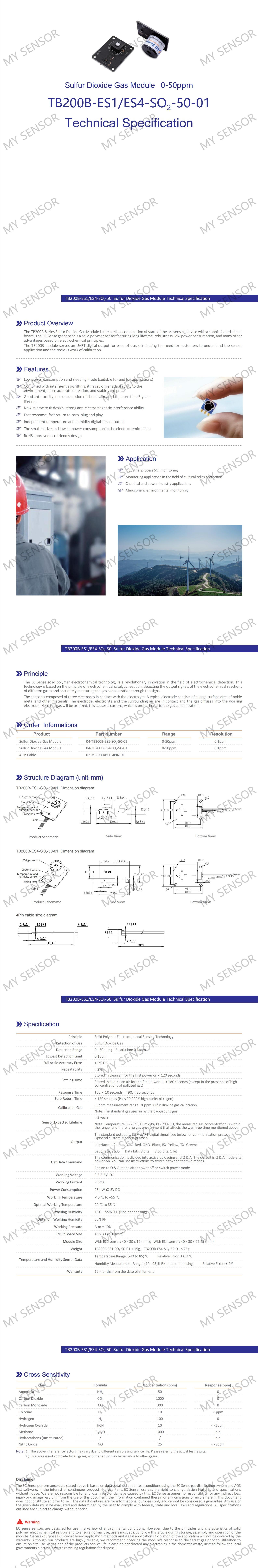 Sulfur Dioxide Gas Module 0-50ppm TB200B-ES1/ES4-SO2-50-01