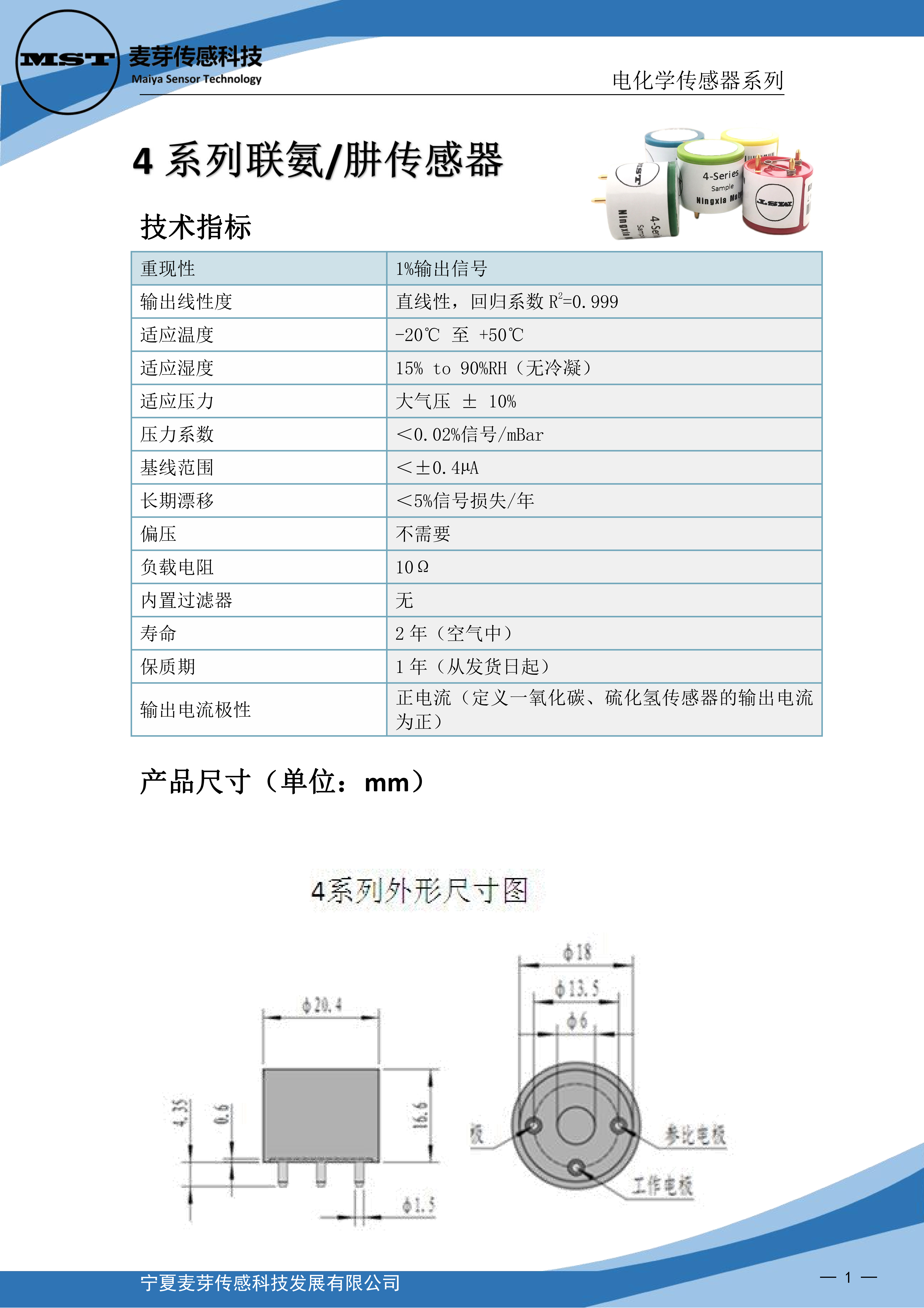 MST 4系列聯(lián)氨/肼傳感器4N2H4