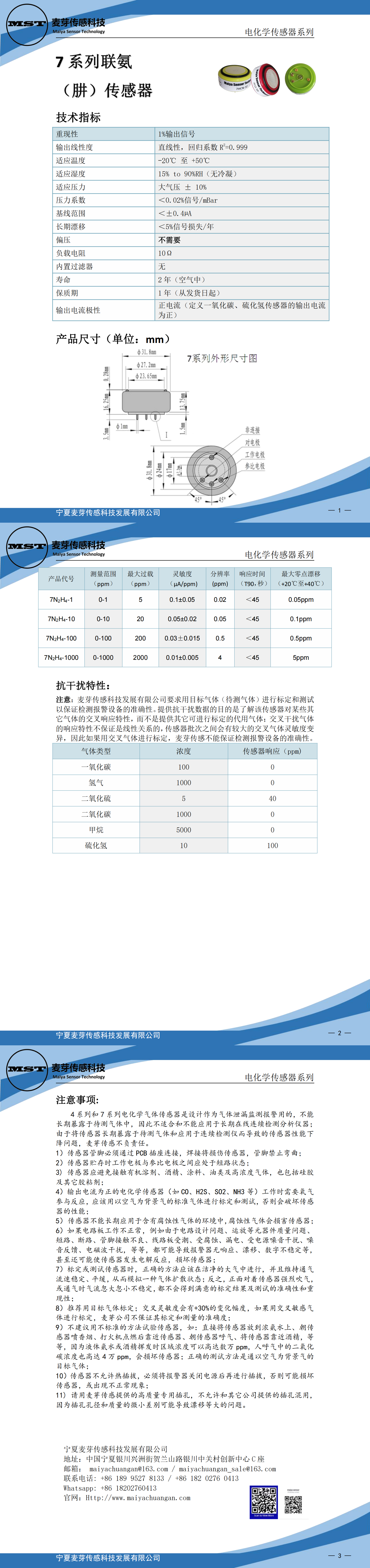 MST 7系列聯(lián)氨(肼)傳感器7N2H4