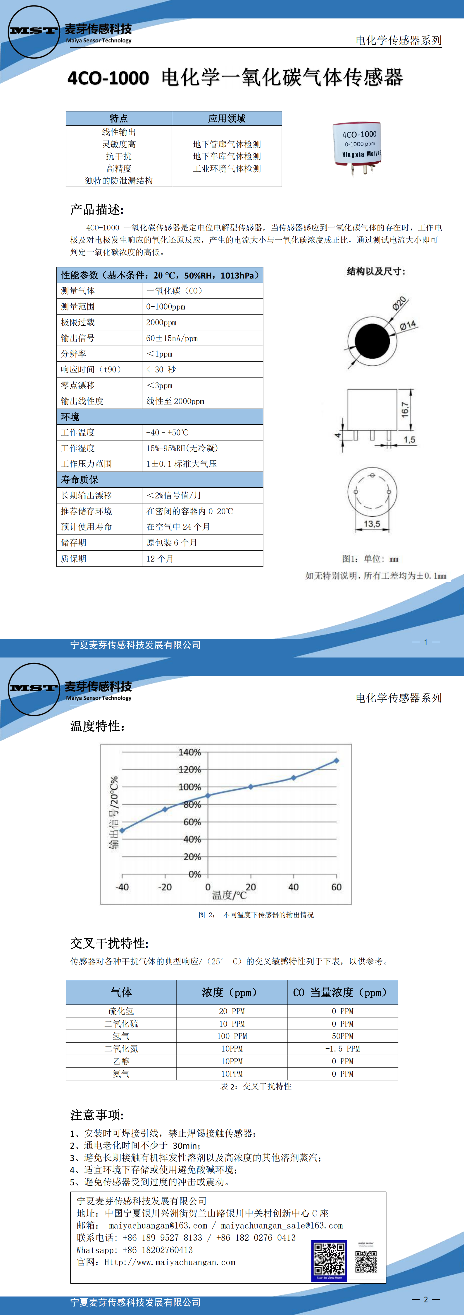 4CO-1000 一氧化碳傳感器是定電位電解型傳感器,當(dāng)傳感器感應(yīng)到一氧化碳?xì)怏w的存在時(shí),工作電極及對(duì)電極發(fā)生響應(yīng)的氧化還原反應(yīng),產(chǎn)生的電流大小與一氧化碳濃度成正比,通過測試電流大小即可判定一氧化碳濃度的高低。