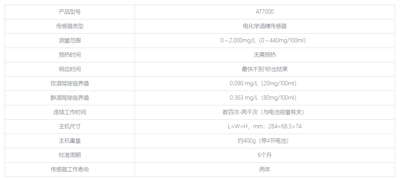 采用高科技電化學(xué)酒精傳感器,可以快速、準(zhǔn)確檢測(cè)呼出氣體中的酒精含量,且抗干擾能力強(qiáng);AT7000所擁有的精簡(jiǎn)鍵盤(pán)、菜單操作和人機(jī)交互界面,使操作更加簡(jiǎn)潔方便;彩色液晶屏顯示使界面更加美觀清晰;高亮度的報(bào)警燈和照明燈指示,使用起來(lái)更加方便;無(wú)接觸式、魚(yú)嘴形吹氣口設(shè)計(jì),保證了被測(cè)試者的健康安全。