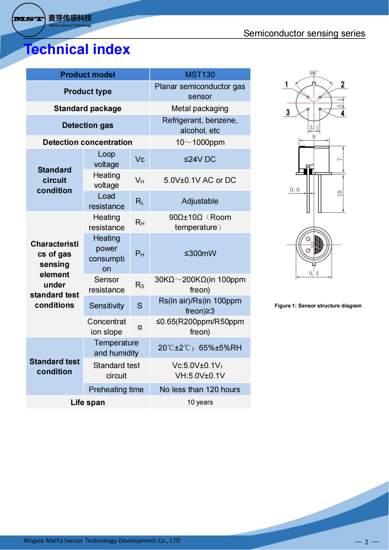 MST130 gas sensor adopts the multi-layer thick film manufacturing process. The heater and the metal oxide semiconductor gas sensitive layer are respectively made on both sides of the micro-al2o3 ceramic substrate and packaged in the metal shell. When the detected gas exists in the ambient air, the conductivity of the sensor changes. The higher the concentration of the gas, the higher the conductivity of the sensor. This change in conductivity can be converted into an output signal corresponding to the gas concentration using a simple circuit.