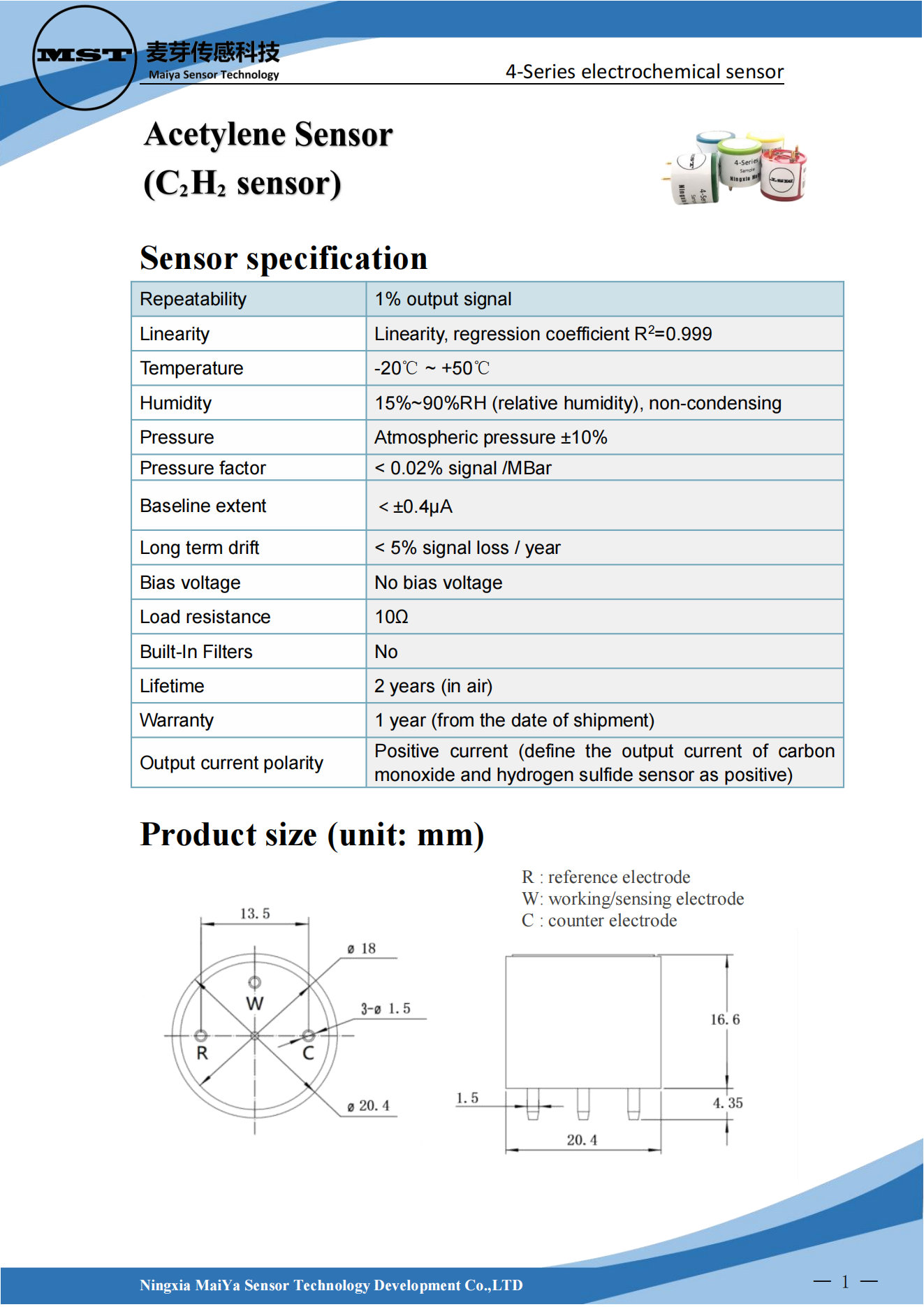 Acetylene Sensor(C?H? sensor) 4-Series electrochemical sensor