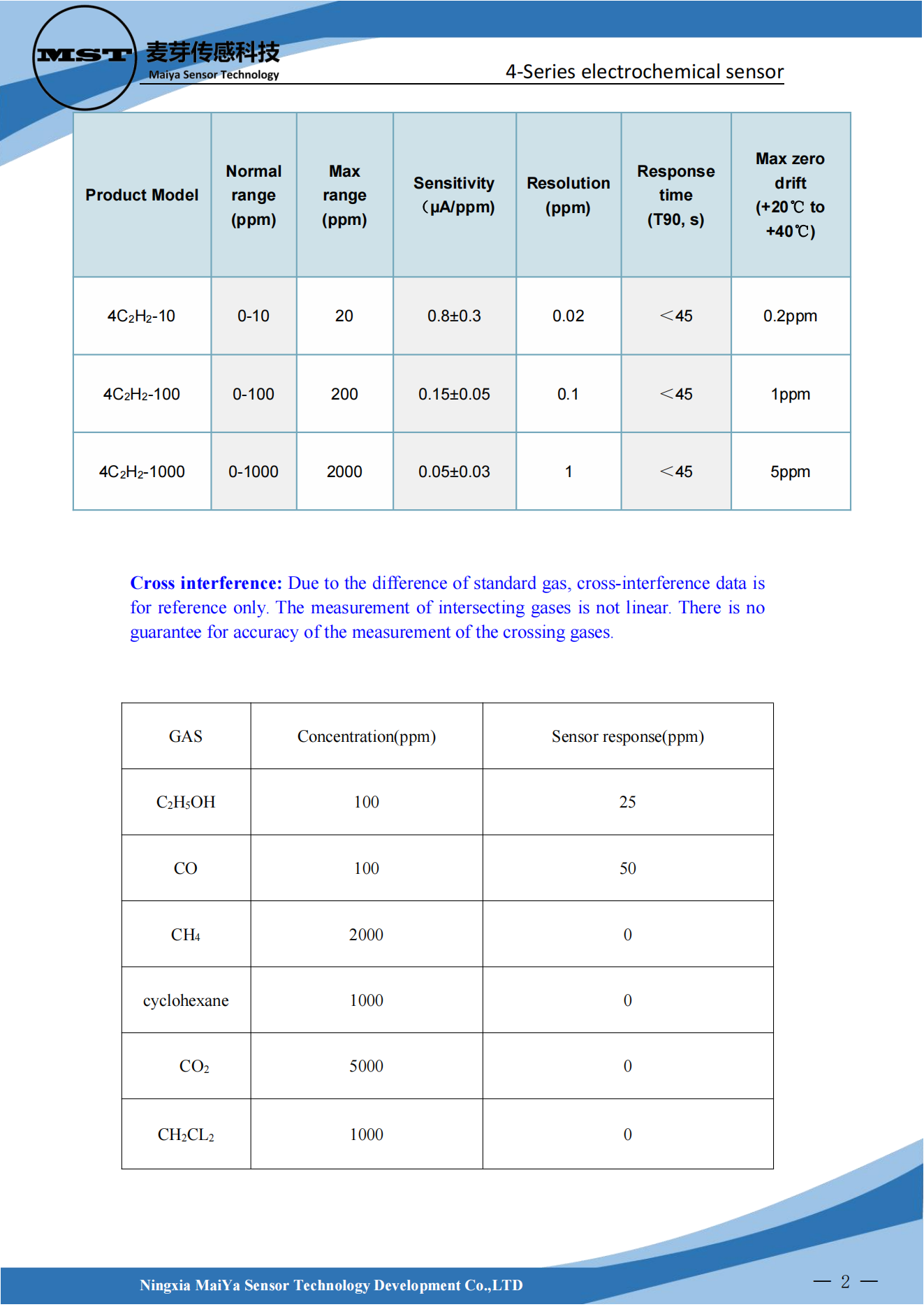 4-Series electrochemical gas sensors are designed for gas leak monitoring and alarm. They are not suitable for long-term exposure to the gas to be measured or long-term on-line continuous detection and analysis instruments.