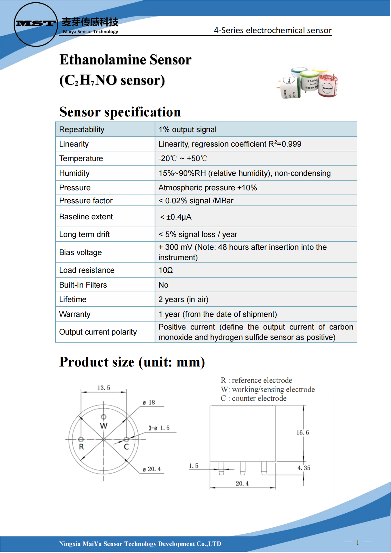 Ethanolamine Sensor(C?H?NO sensor)4-Series electrochemical sensor
