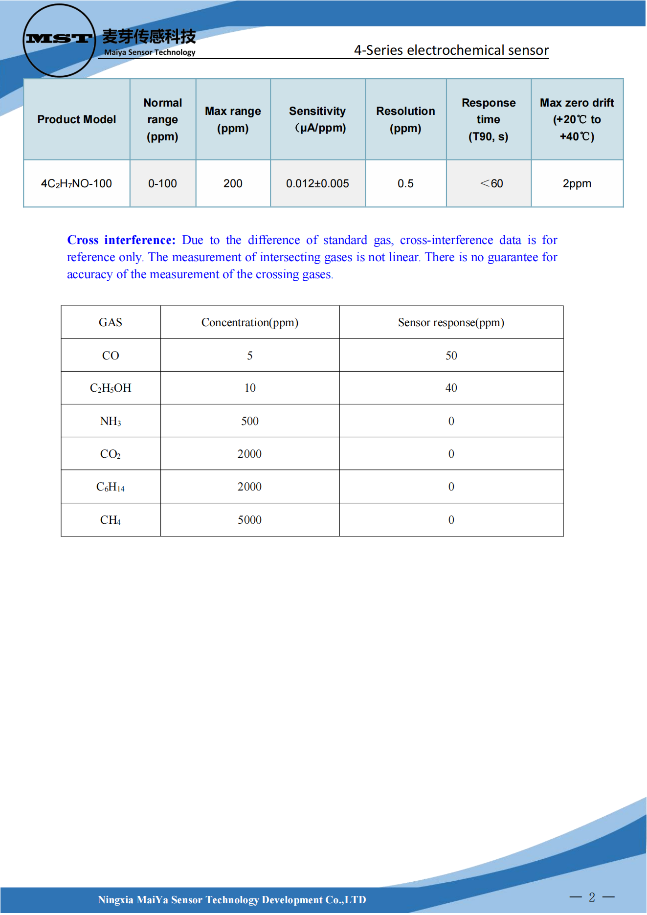 4-Series electrochemical gas sensors are designed for gas leak monitoring and alarm. They are not suitable for long-term exposure to the gas to be measured or long-term on-line continuous detection and analysis instruments.