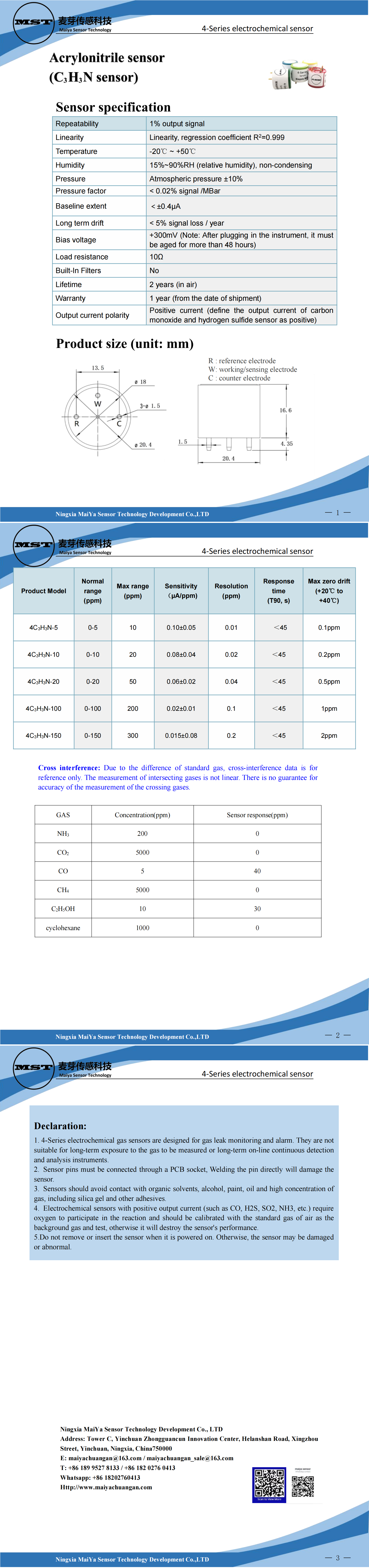 Acrylonitrile Sensor(C3H3N sensor)4-Series electrochemical sensor