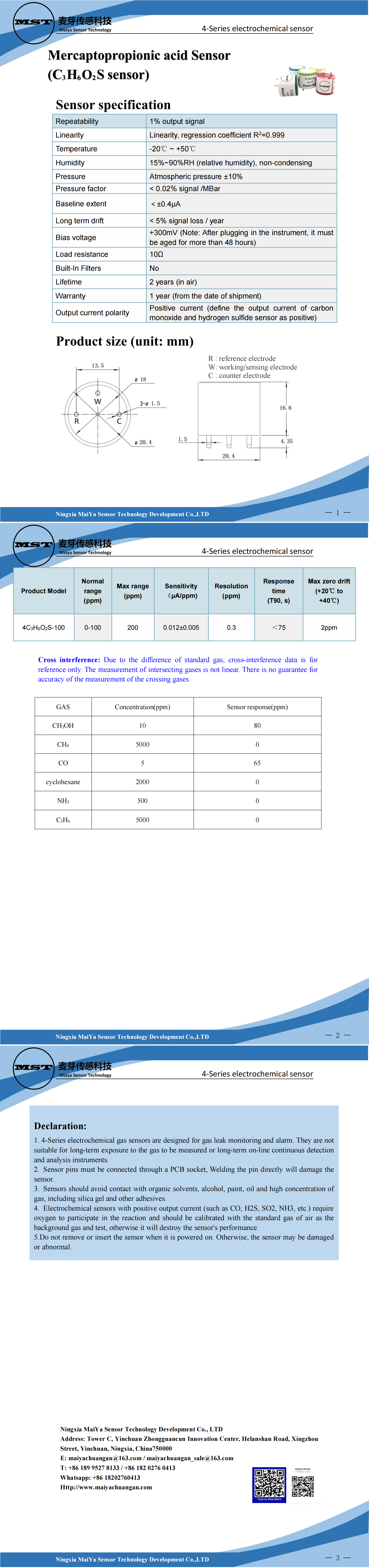 Mercaptopropionic acid Sensor(C3H?O?S sensor)4-Series electrochemical sensor