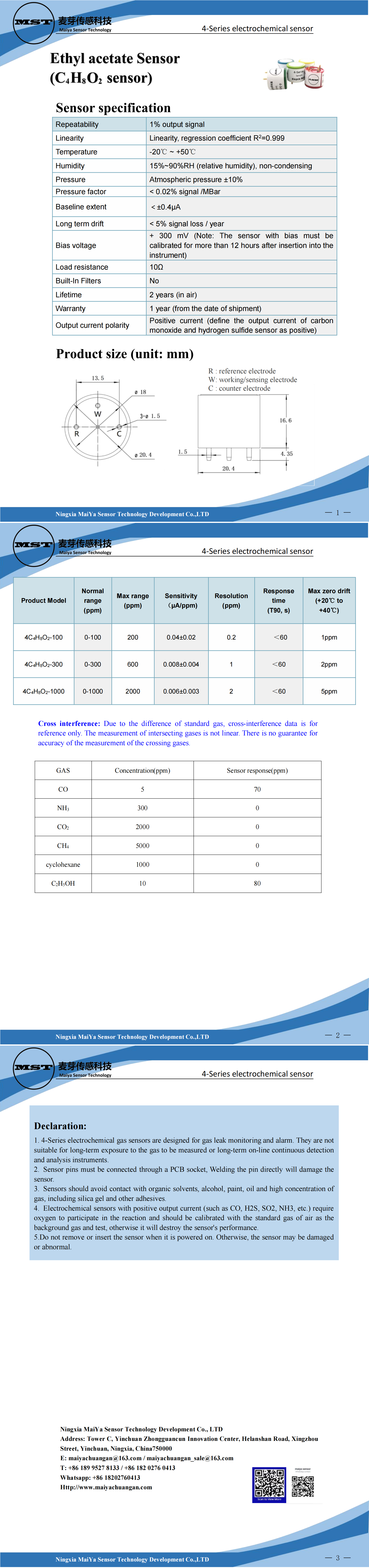 Ethyl acetate Sensor(C?H?O? sensor)4-Series electrochemical sensor