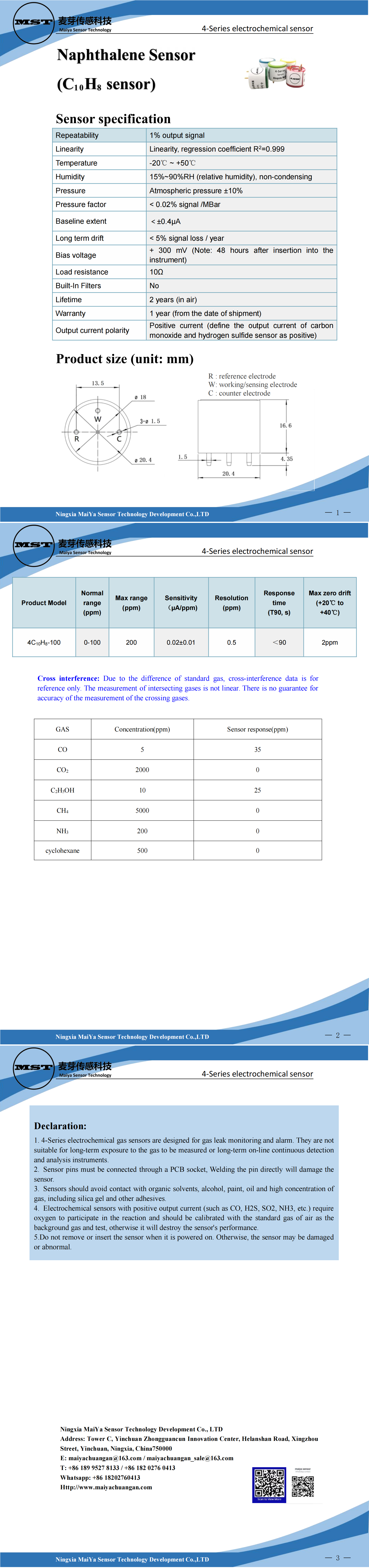 Naphthalene Sensor(C??H? sensor)4-Series electrochemical sensor