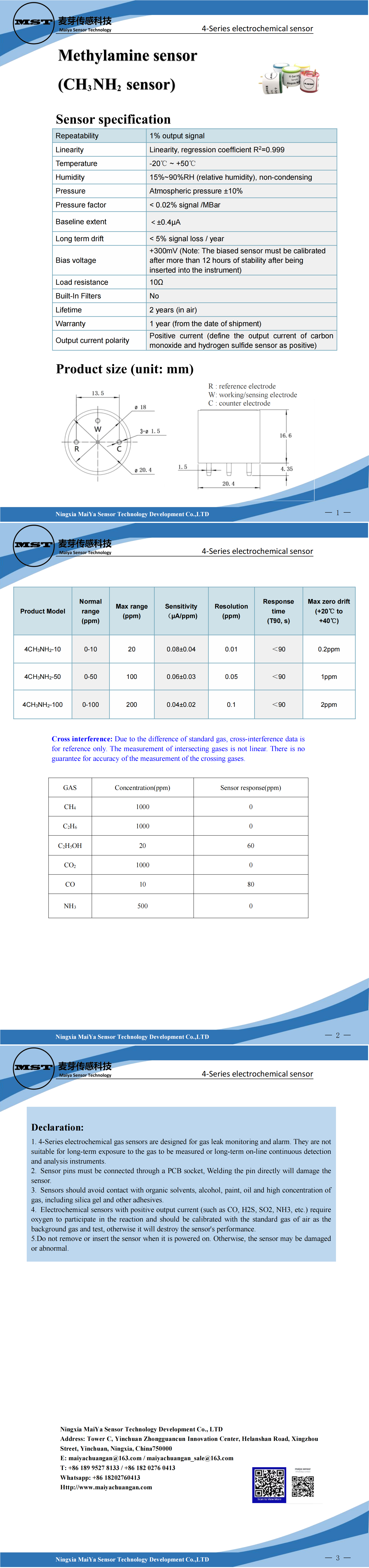 Methylamine sensor(CH?NH? sensor)4-Series electrochemical sensor