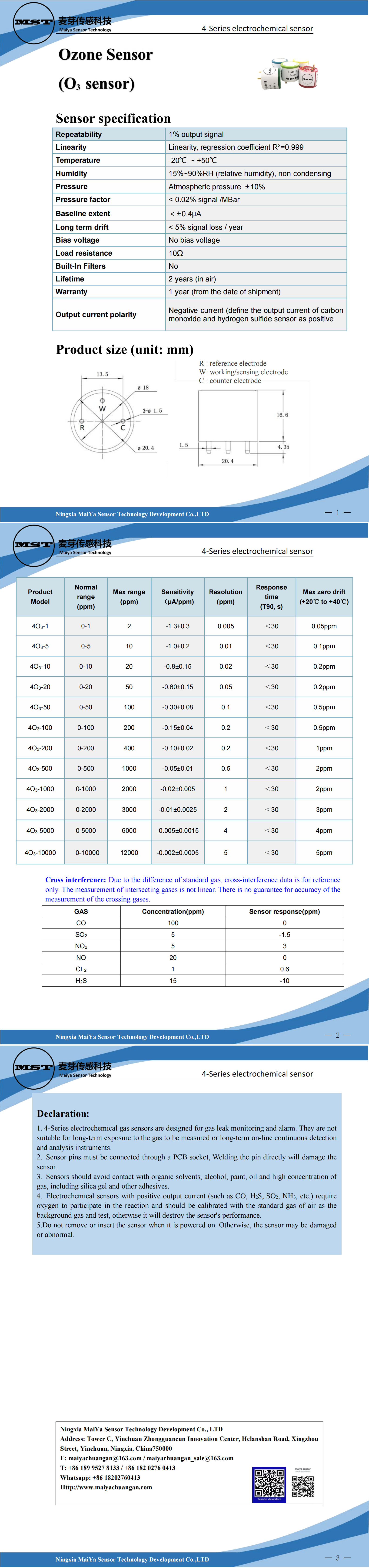 Ozone Sensor (O? sensor)4-Series electrochemical sensor