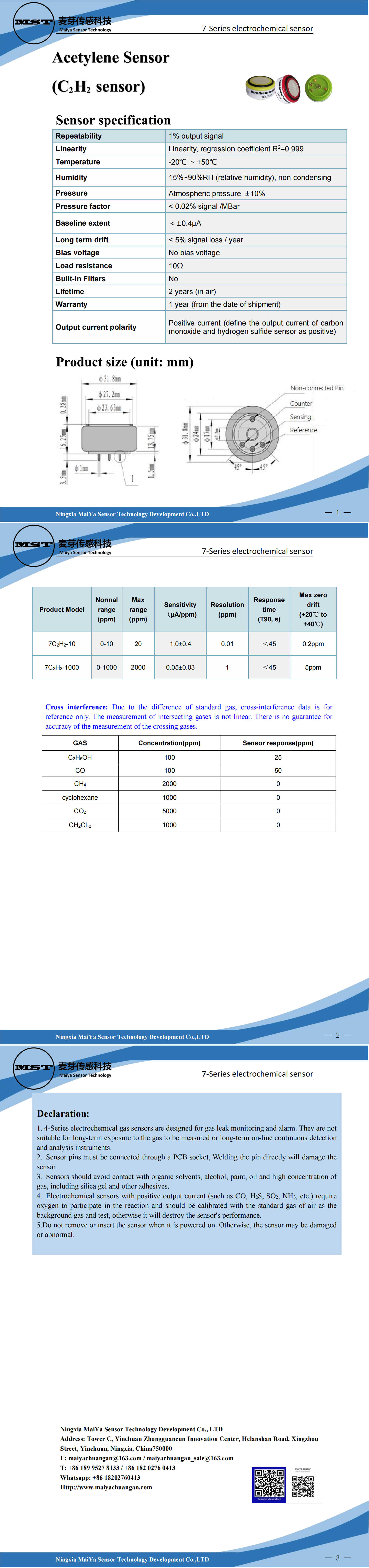 Acetylene Sensor(C?H? sensor)7-Series electrochemical sensor