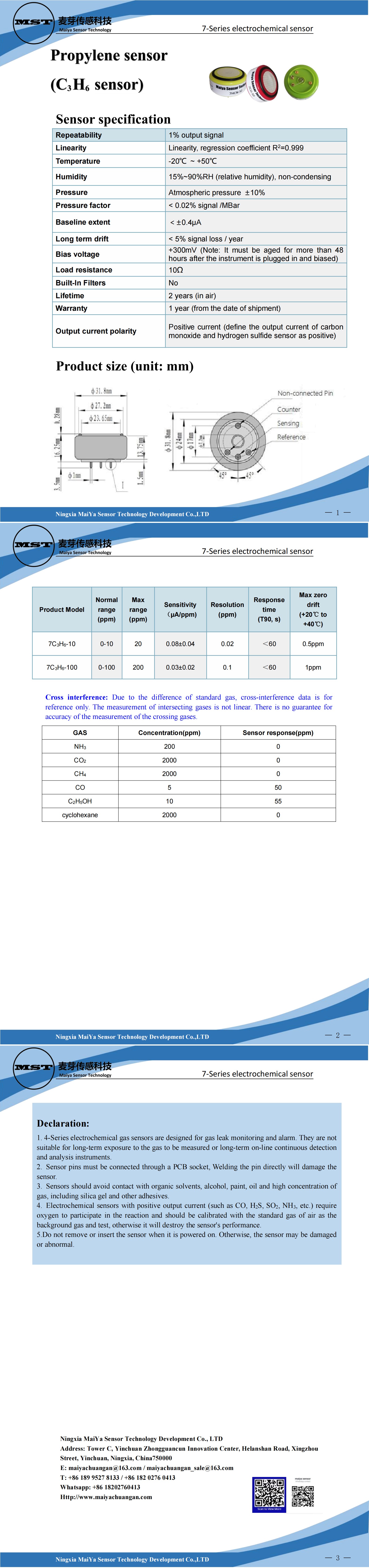 Propylene sensor(C?H? sensor)7-Series electrochemical sensor