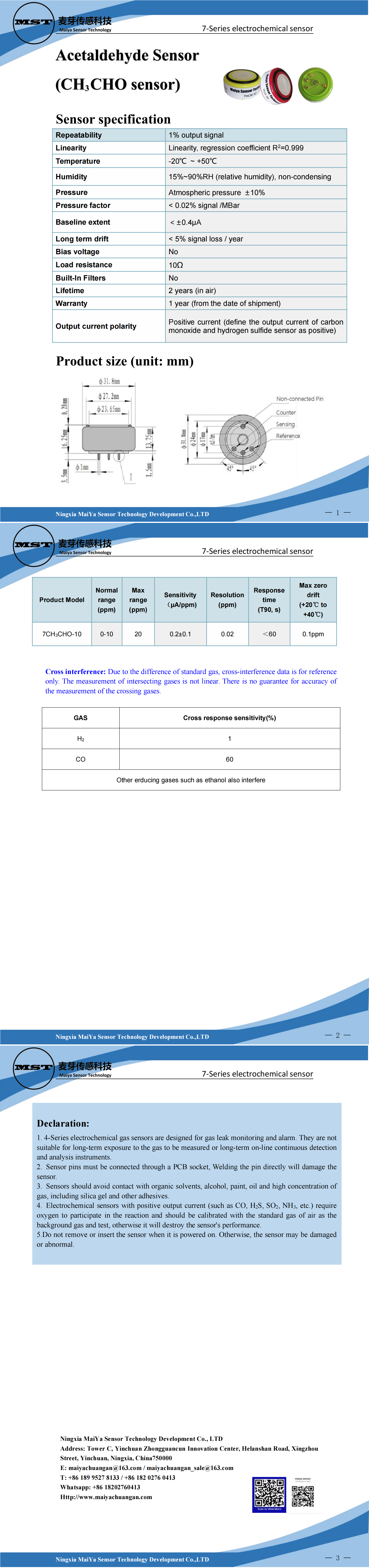Acetaldehyde Sensor(CH?CHO sensor)7-Series electrochemical sensor