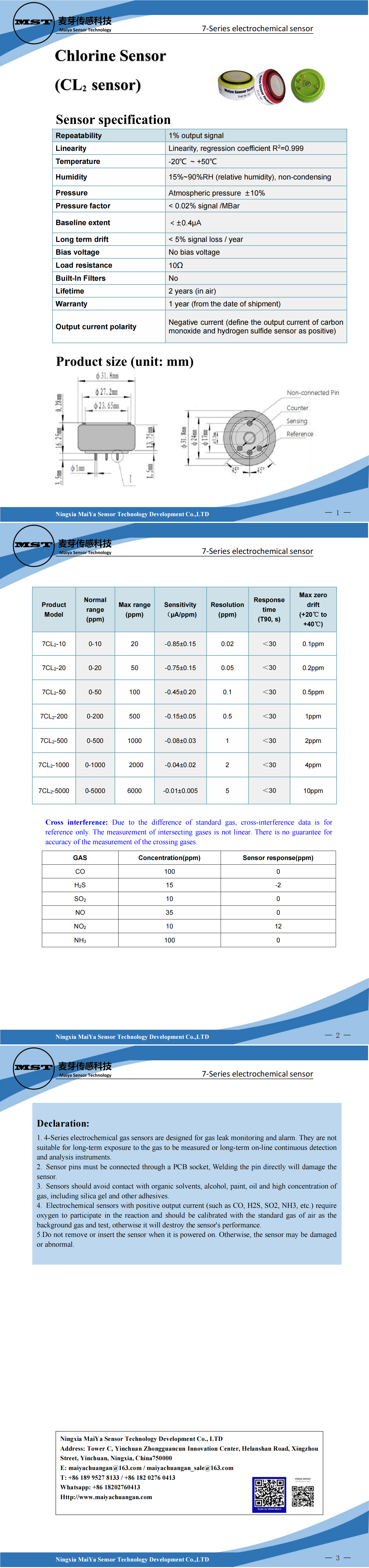 Chlorine Sensor (CL? sensor)7-Series electrochemical sensor