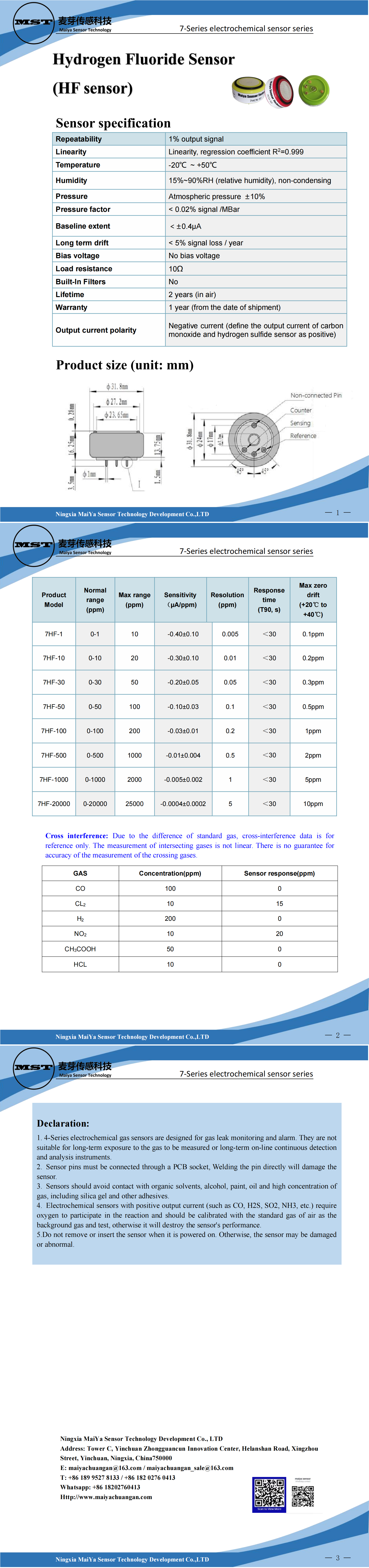 Hydrogen Fluoride Sensor(HF sensor)7-Series electrochemical sensor