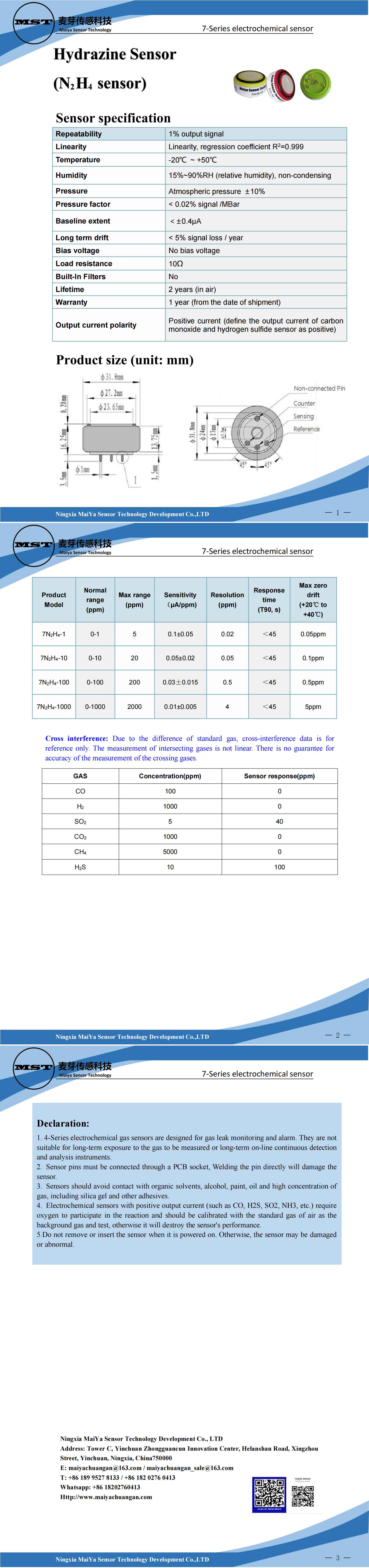 Hydrazine Sensor(N?H? sensor)7-Series electrochemical sensor