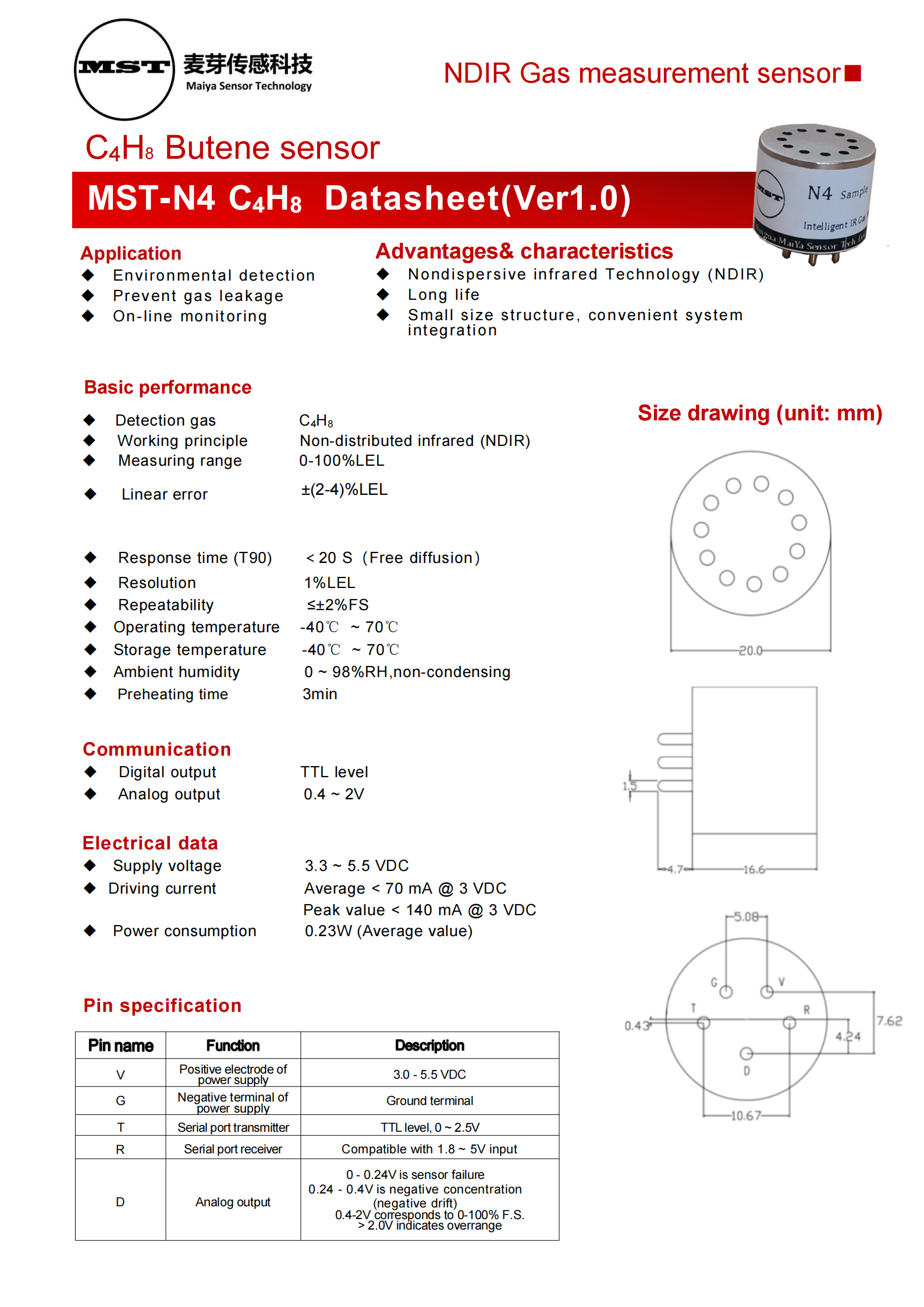 MST-N4 C4H? Butene sensor NDIR Gas measurement sensor