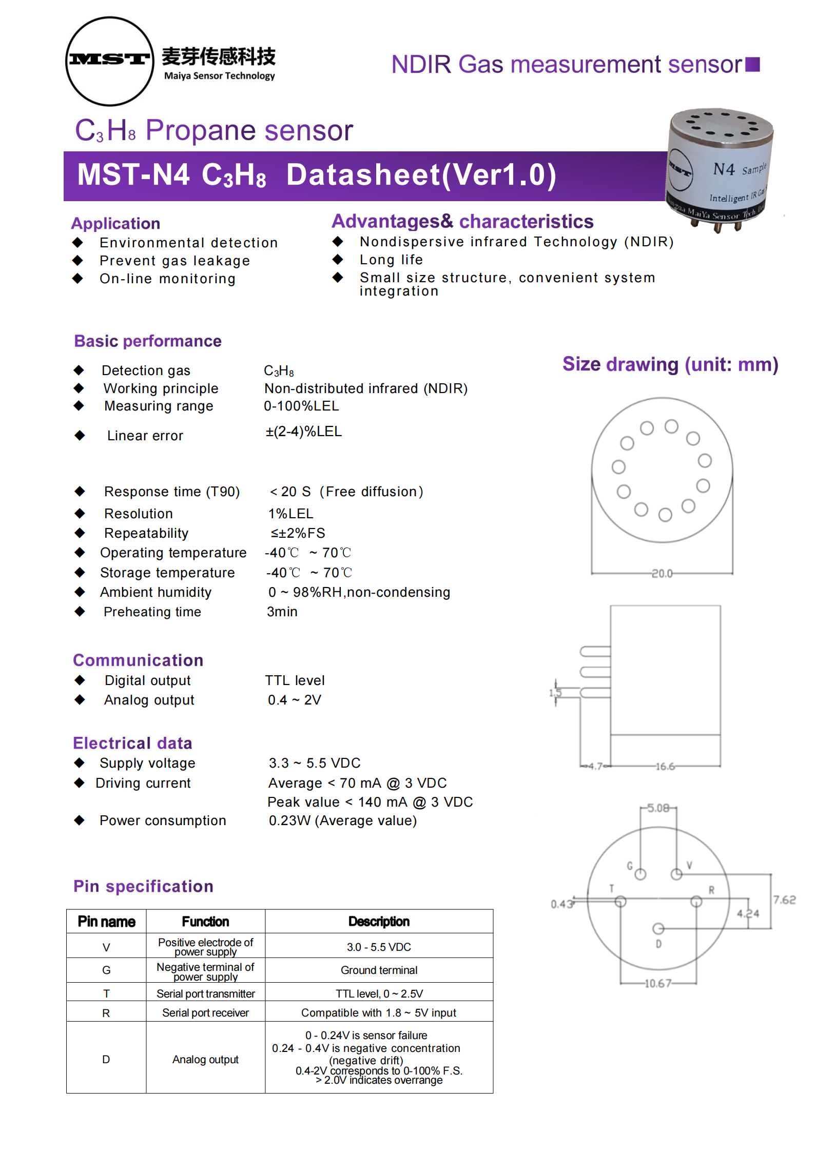 Advantages& characteristics Nondispersive infrared Technology (NDIR) Long life Small size structure, convenient system integration