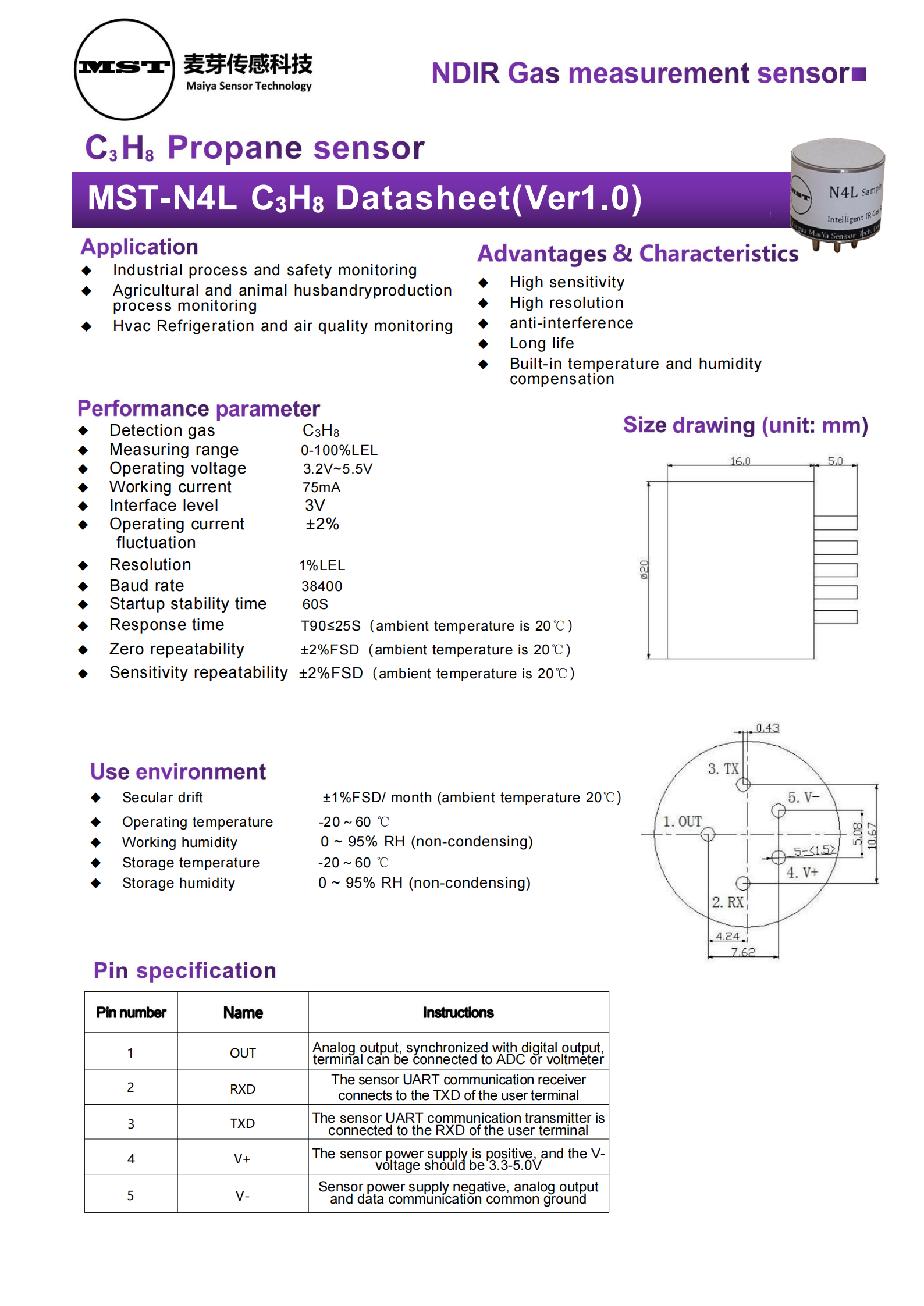 MST-N4L C3H8 Propane sensor NDIR Gas measurement sensor