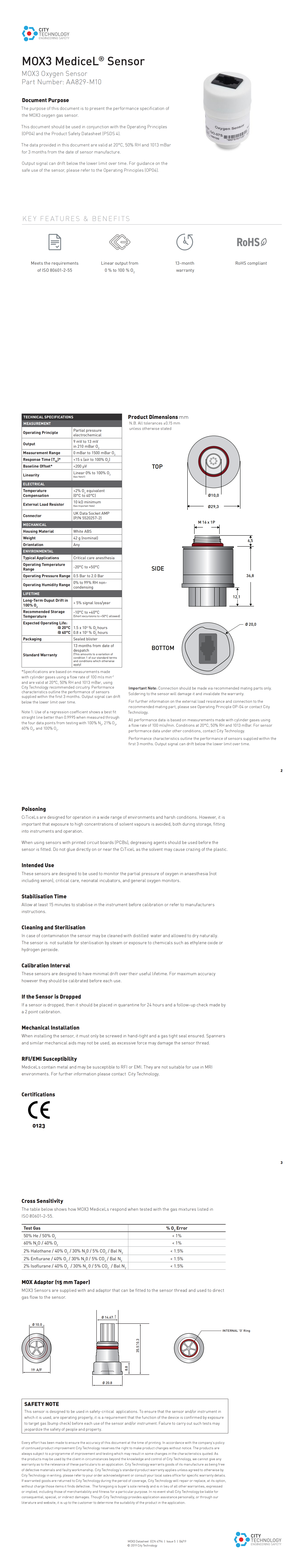 Meets the requirements of ISO 80601-2-55 Linear output from 0 % to 100 % O2