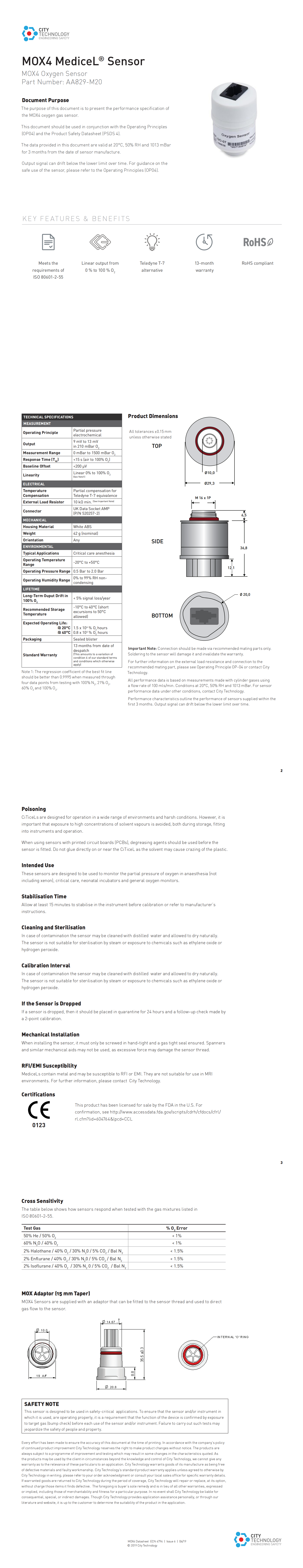 City MOX4 MediceL Oxygen Sensor Part Number: AA829-M20