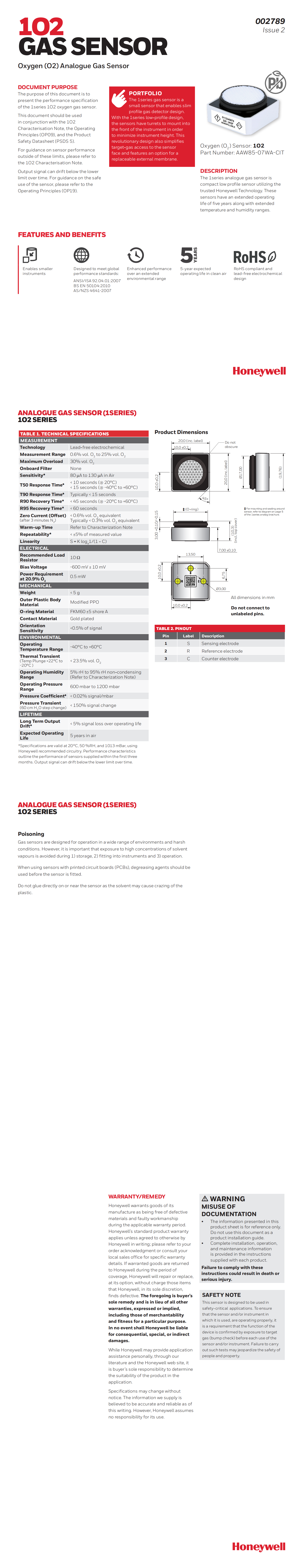 The 1series analogue gas sensor is compact low profile sensor utilizing the trusted Honeywell Technology. These sensors have an extended operating life of five years along with extended temperature and humidity ranges.