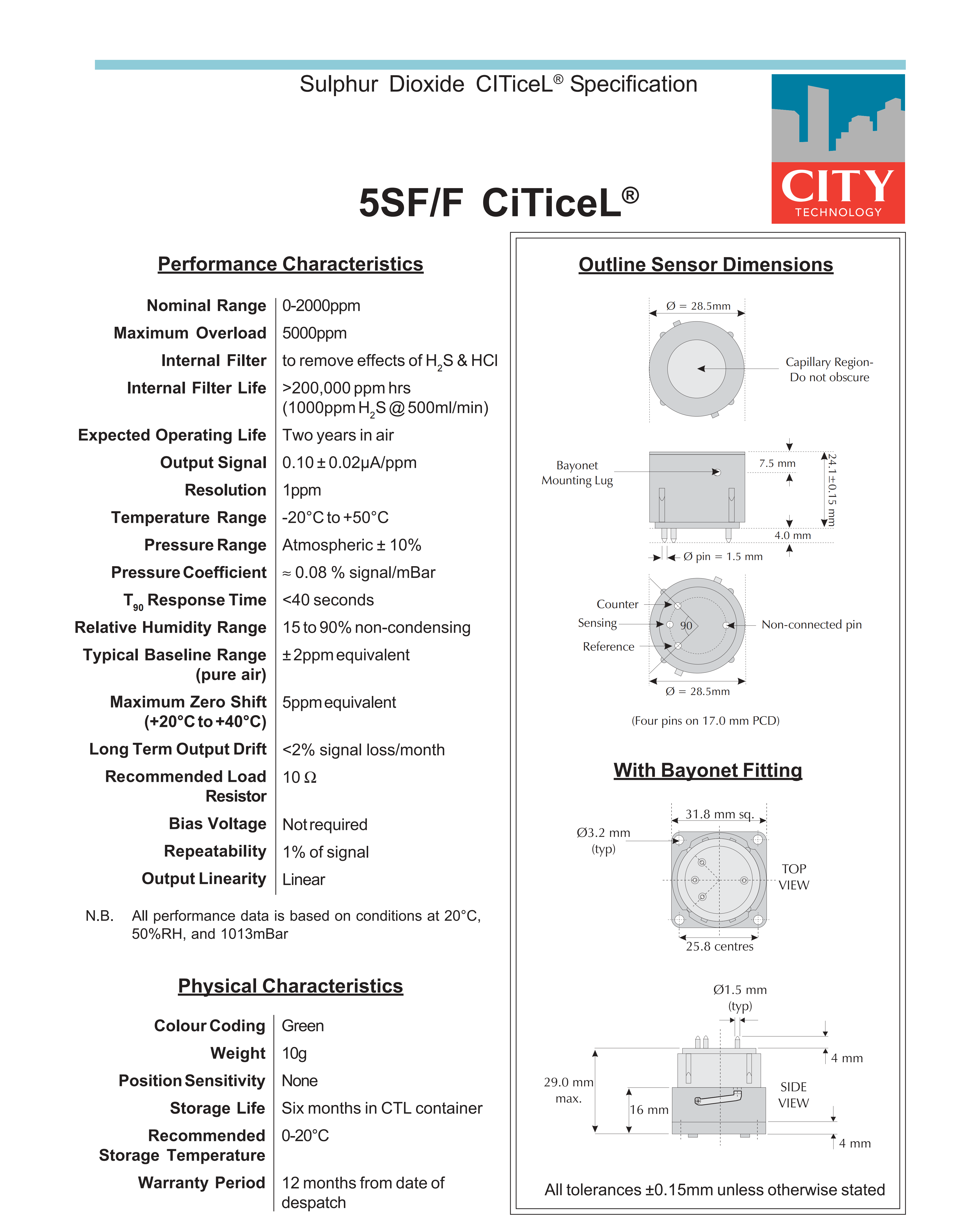 Nominal Range 0-2000ppm Maximum Overload 5000ppm