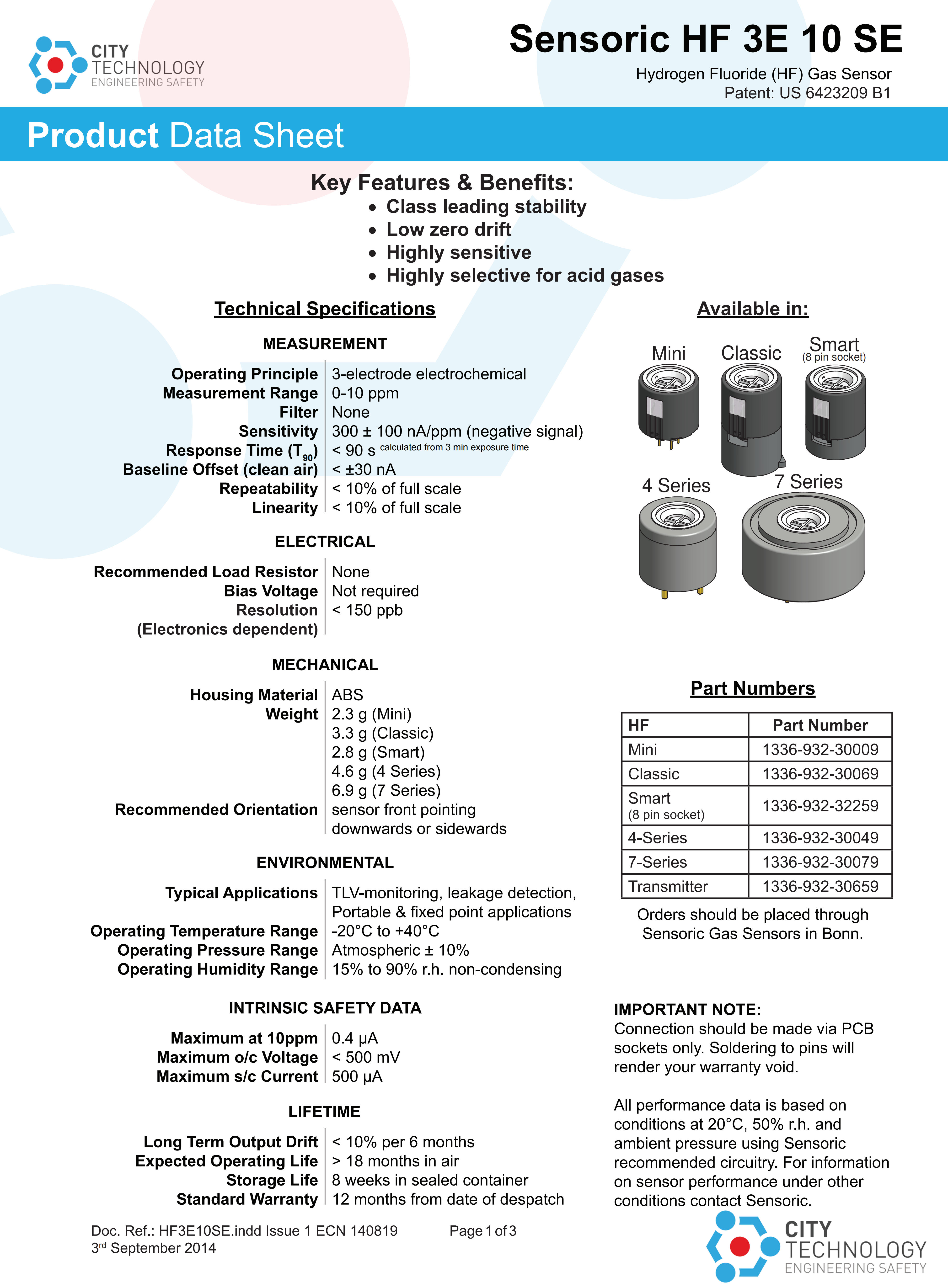 Key Features & Benefits: ? Class leading stability ? Low zero drift ? Highly sensitive ? Highly selective for acid gases