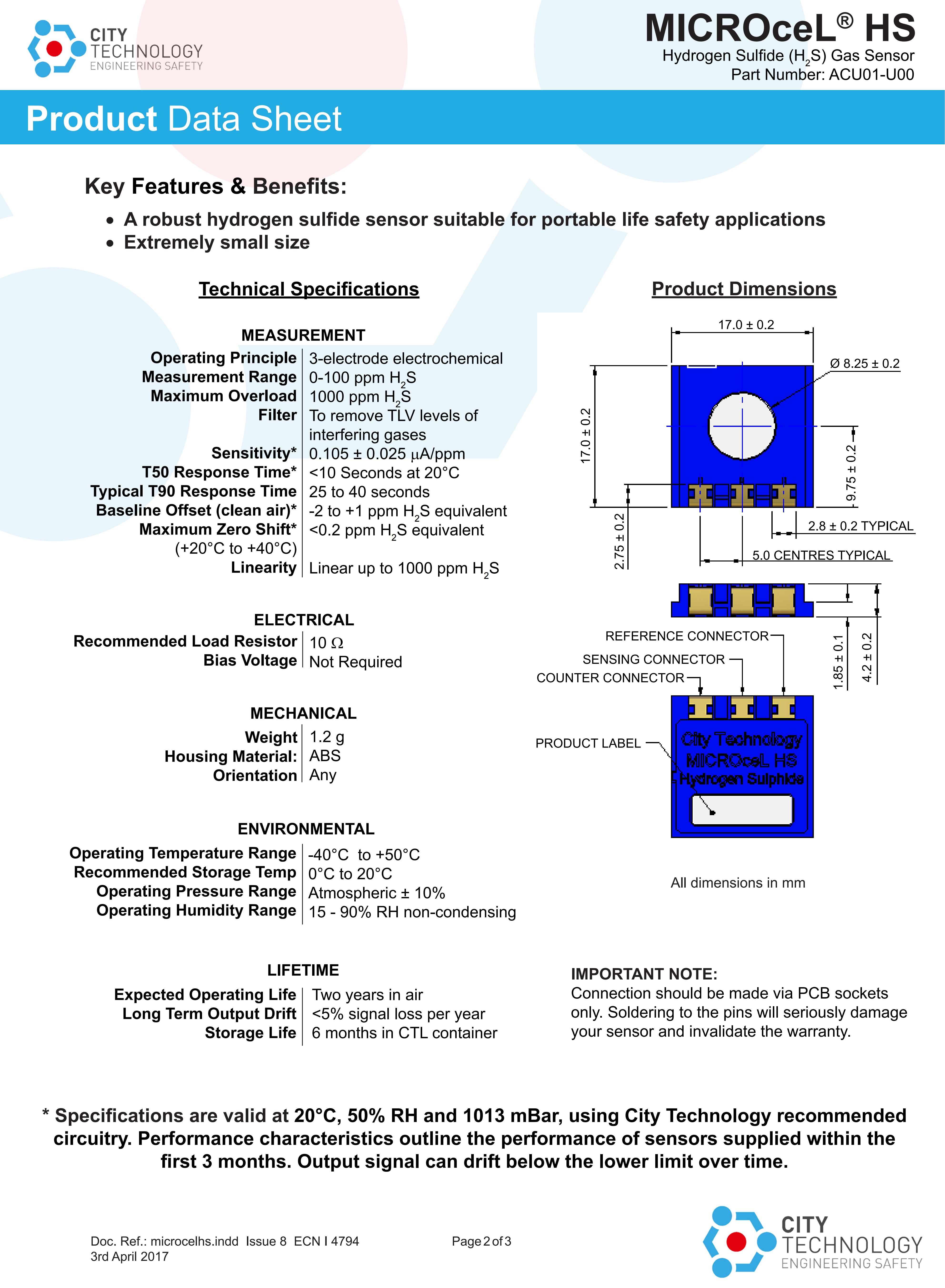 Key Features & Benefits: ? A robust hydrogen sulfide sensor suitable for portable life safety applications ? Extremely small size