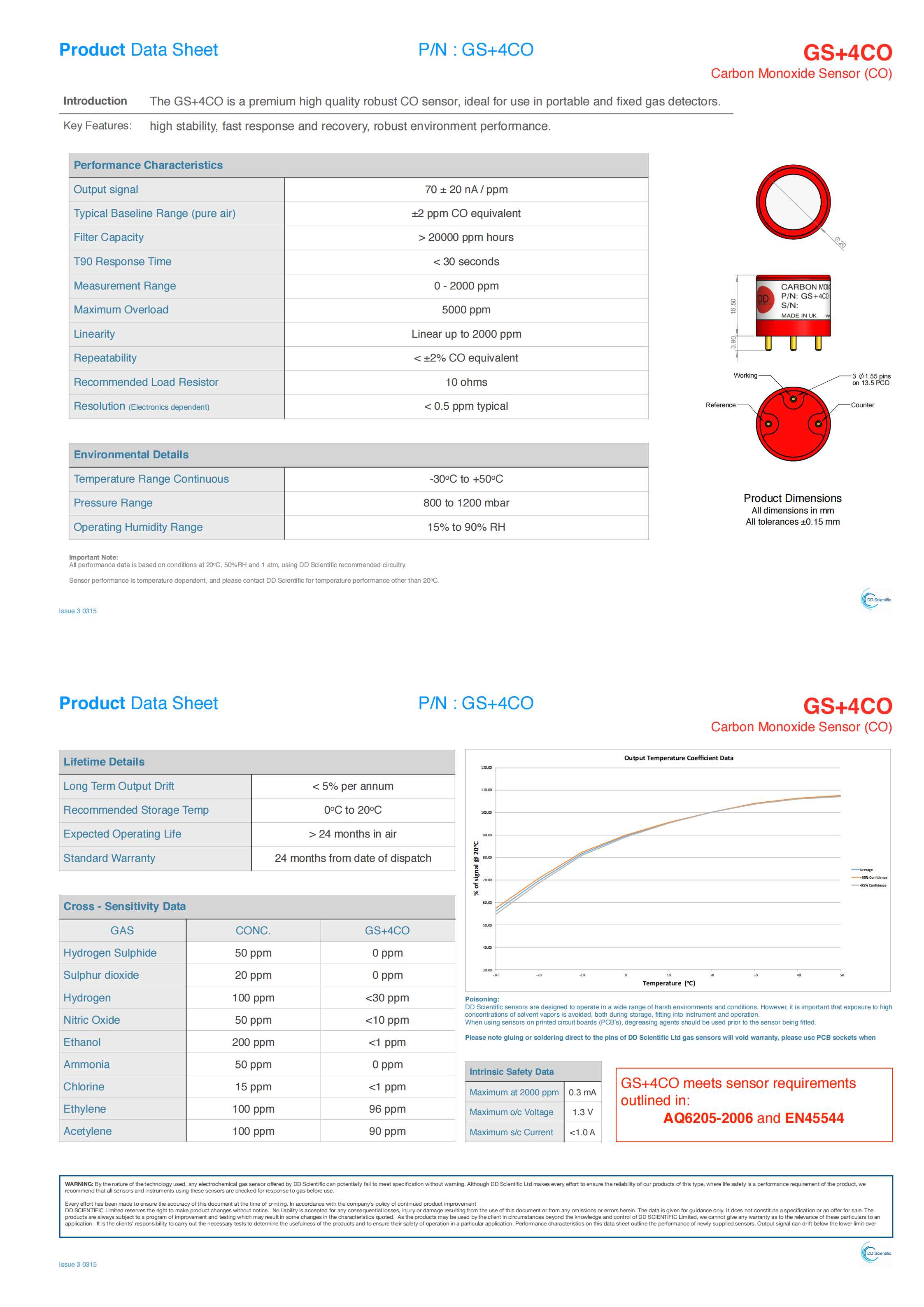 The GS+4CO is a premium high quality robust CO sensor, ideal for use in portable and fixed gas detectors. Key Features: high stability, fast response and recovery, robust environment performance.
