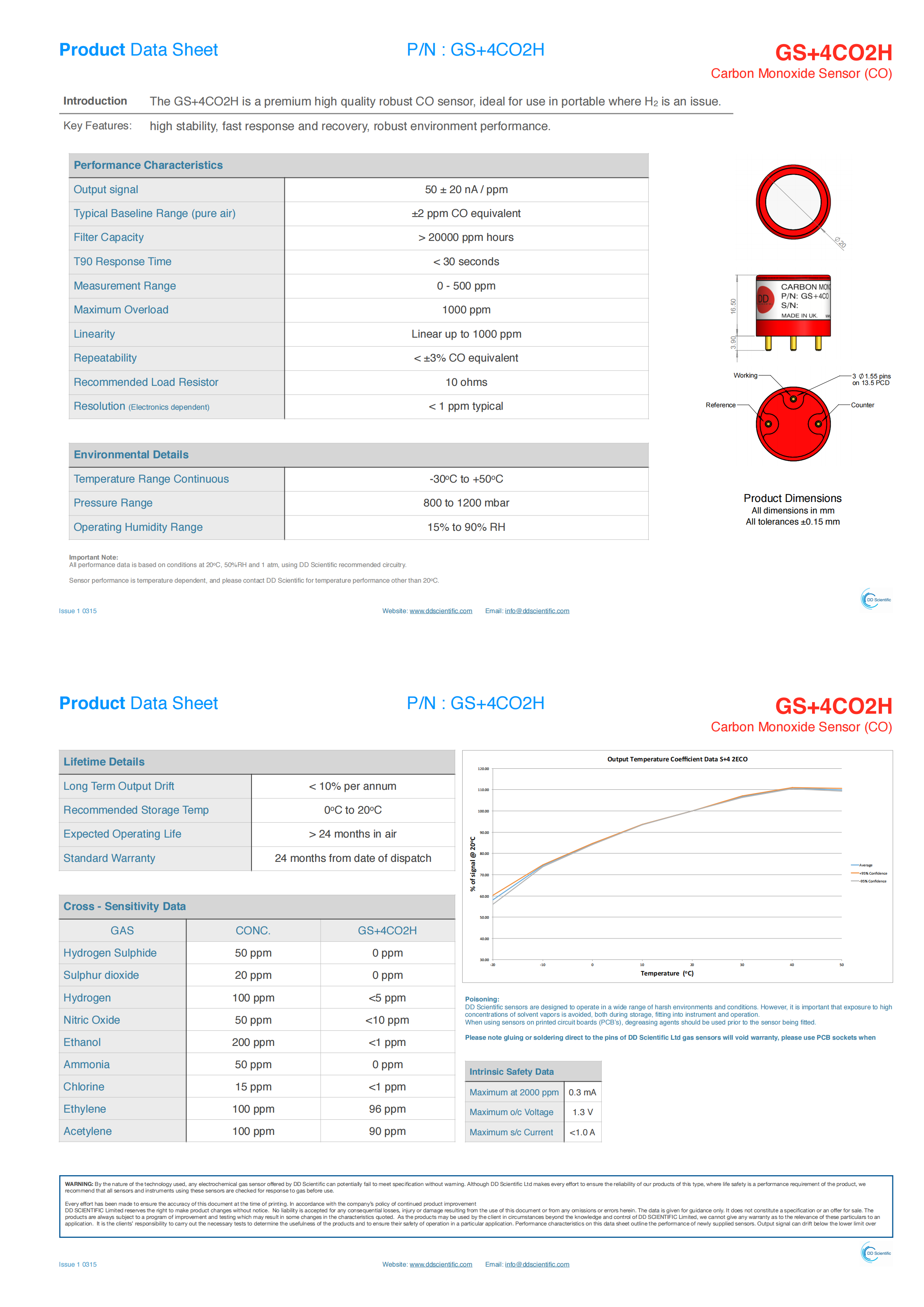 The GS+4CO-2H is a premium high quality robust CO sensor, ideal for use in portable where H2 is an issue. Key Features: high stability, fast response and recovery, robust environment performance.