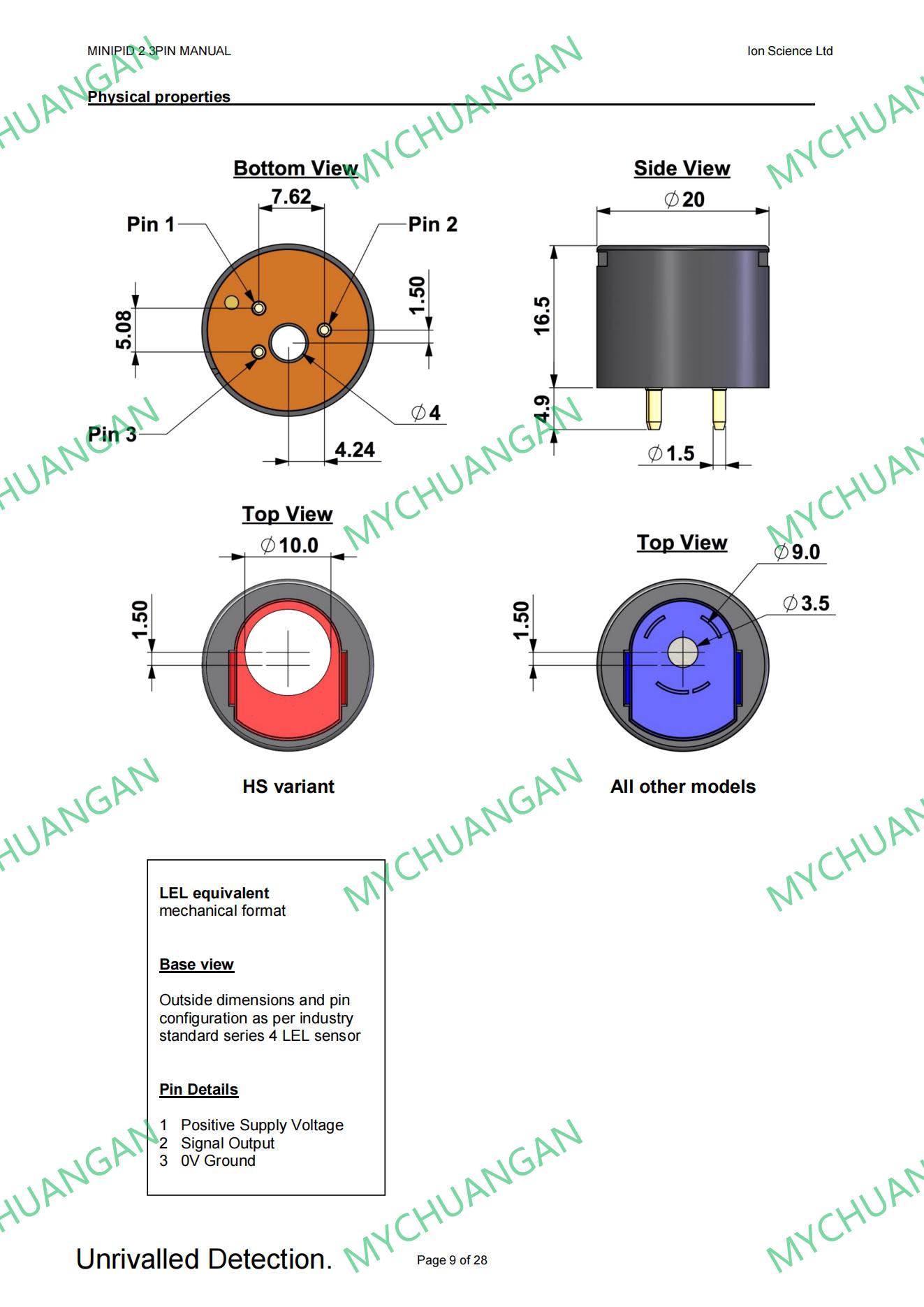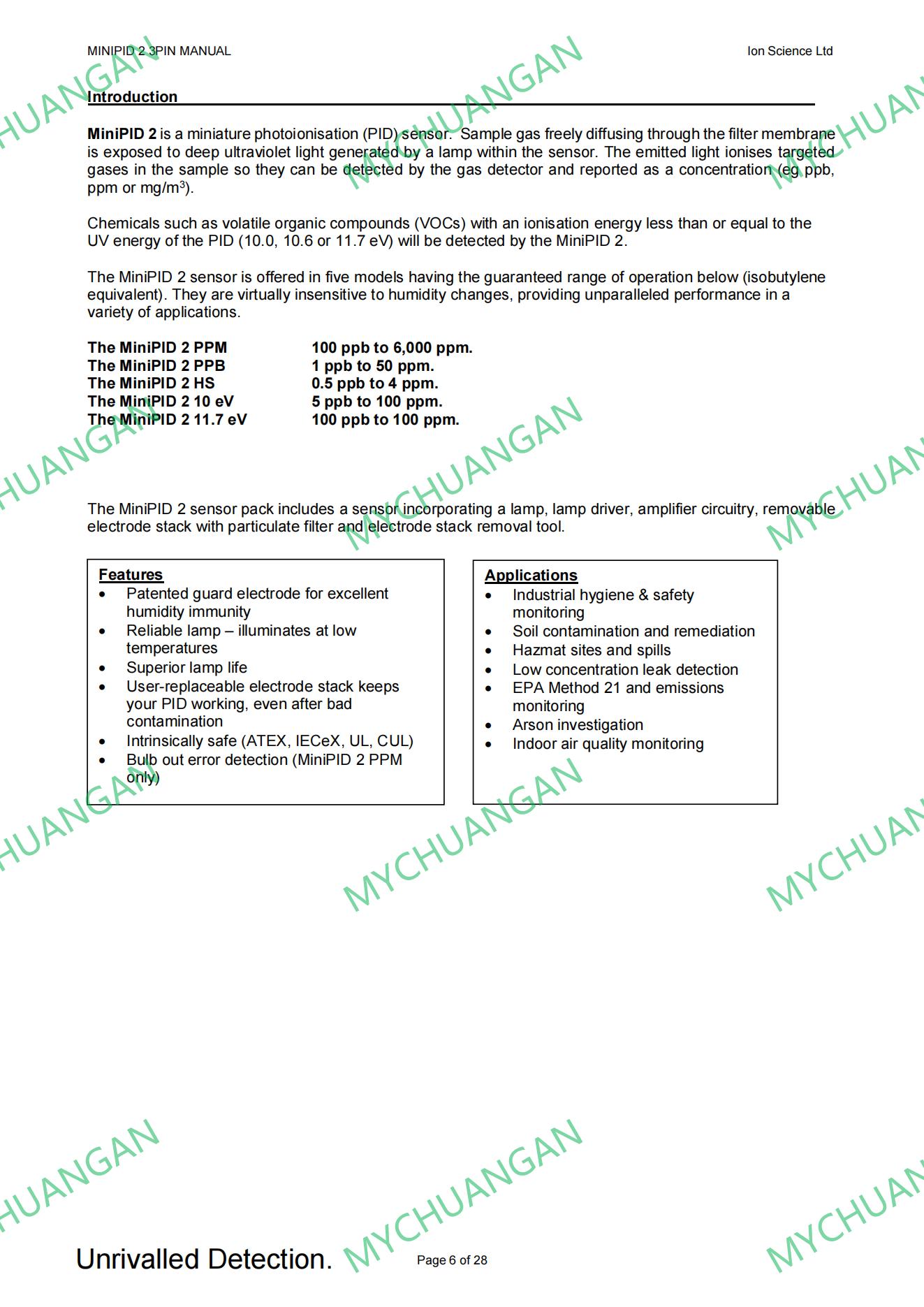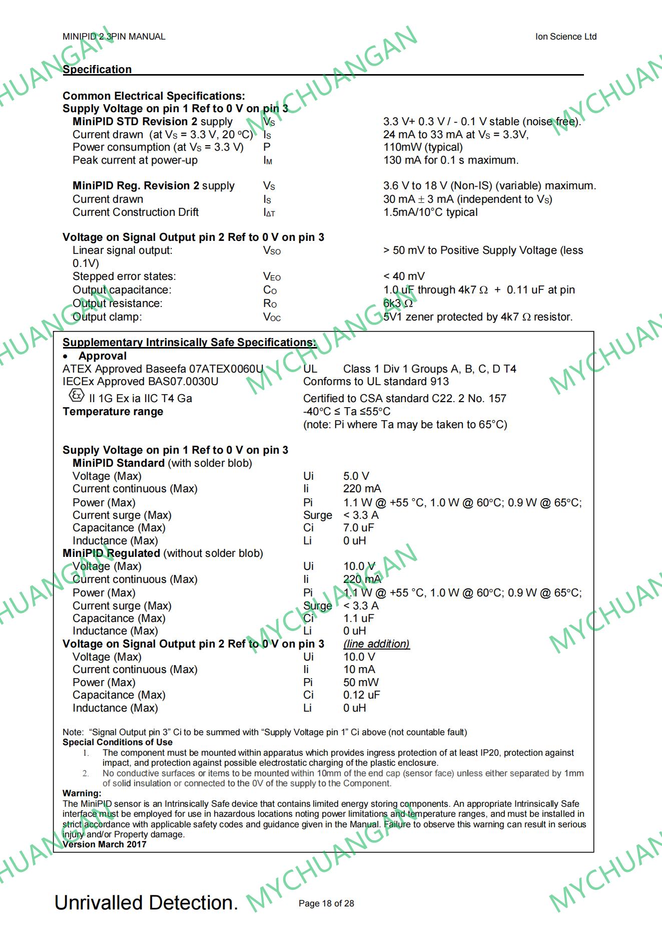 Intrinsically safe photo-ionisation sensor for volatile organic compounds