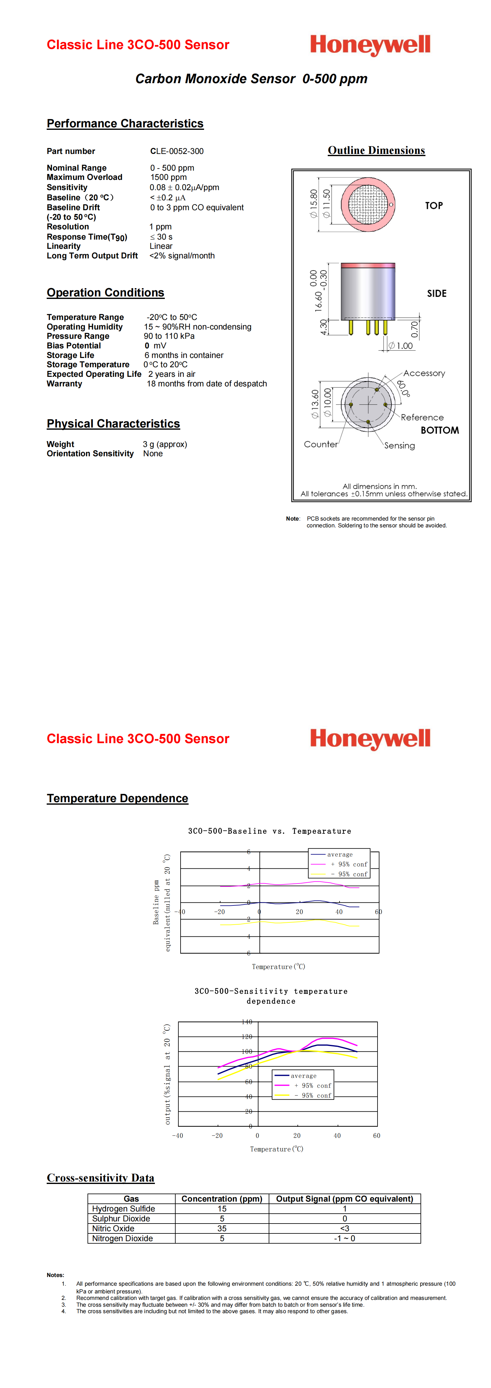 Nominal Range 0 - 500 ppm Maximum Overload 1500 ppm