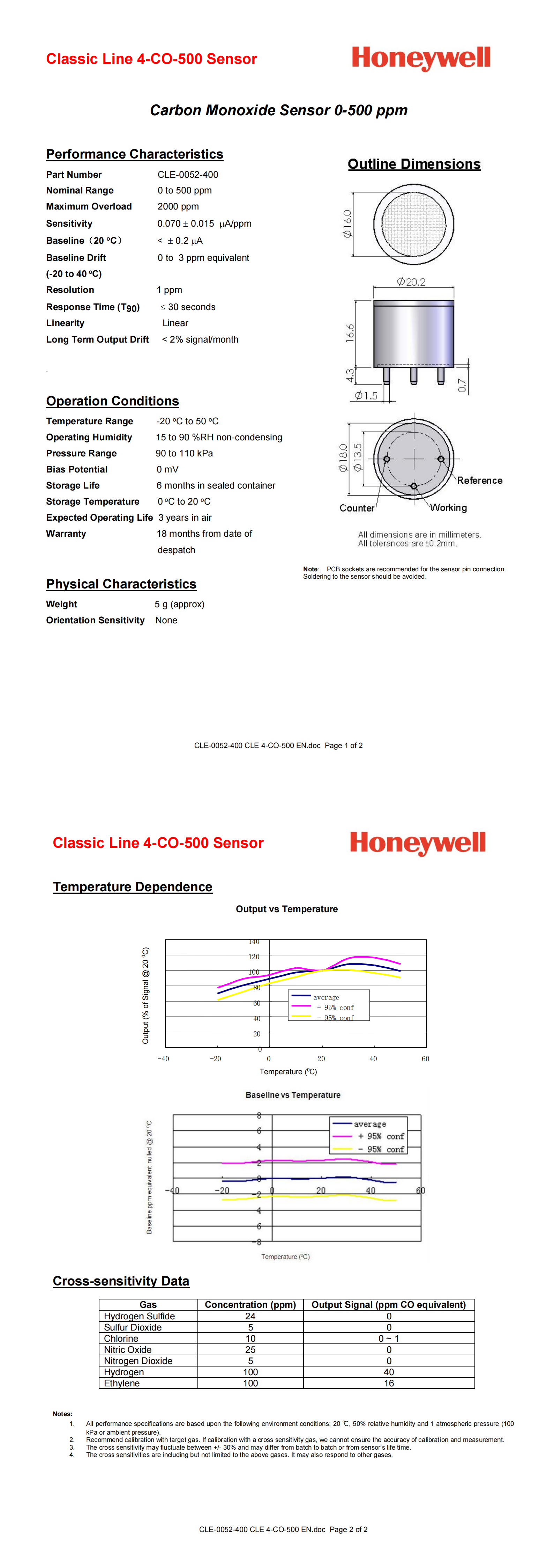 Nominal Range 0 to 500 ppm Maximum Overload 2000 ppm