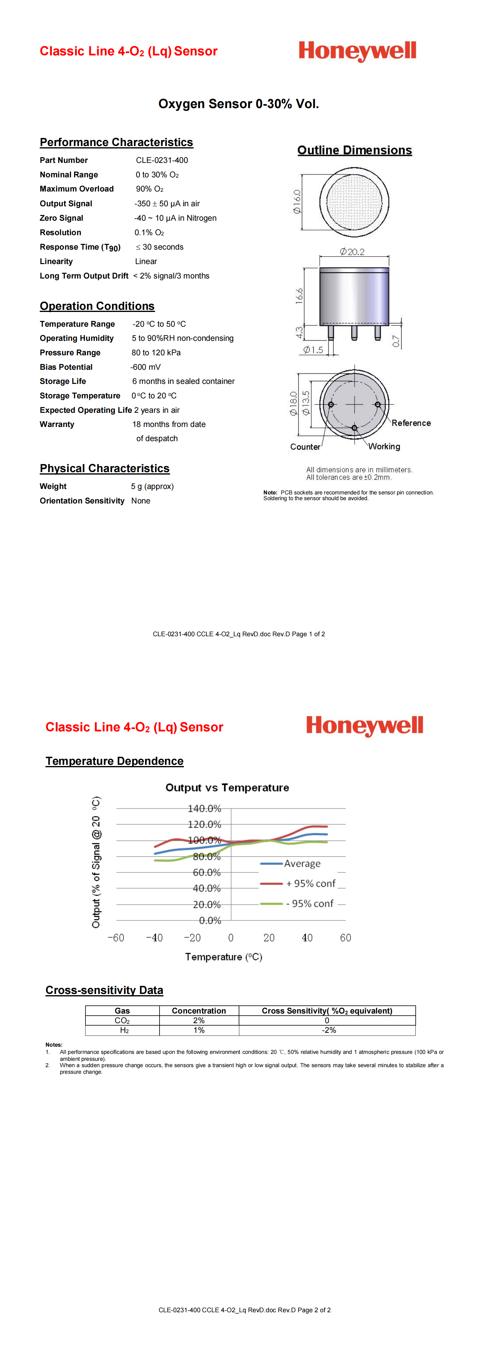 Nominal Range 0 to 30% O2 Maximum Overload 90% O2