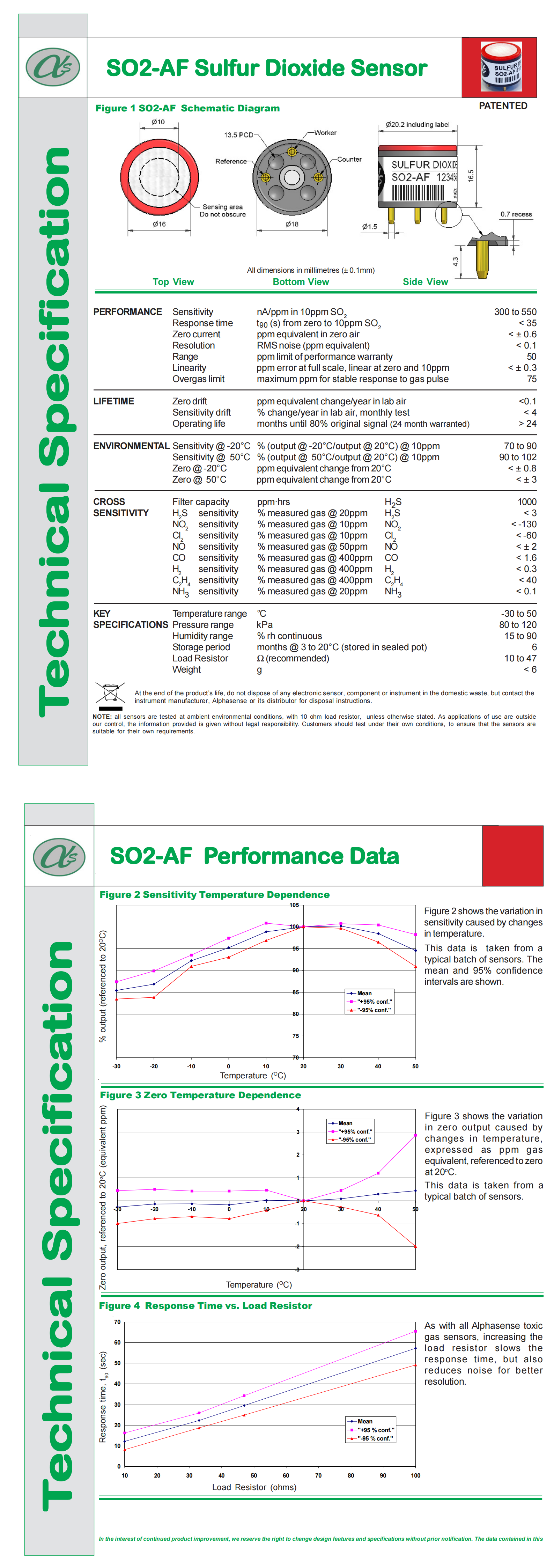 Alphasense Sulfur Dioxide gas sensors operate using proven fuel cell technology.