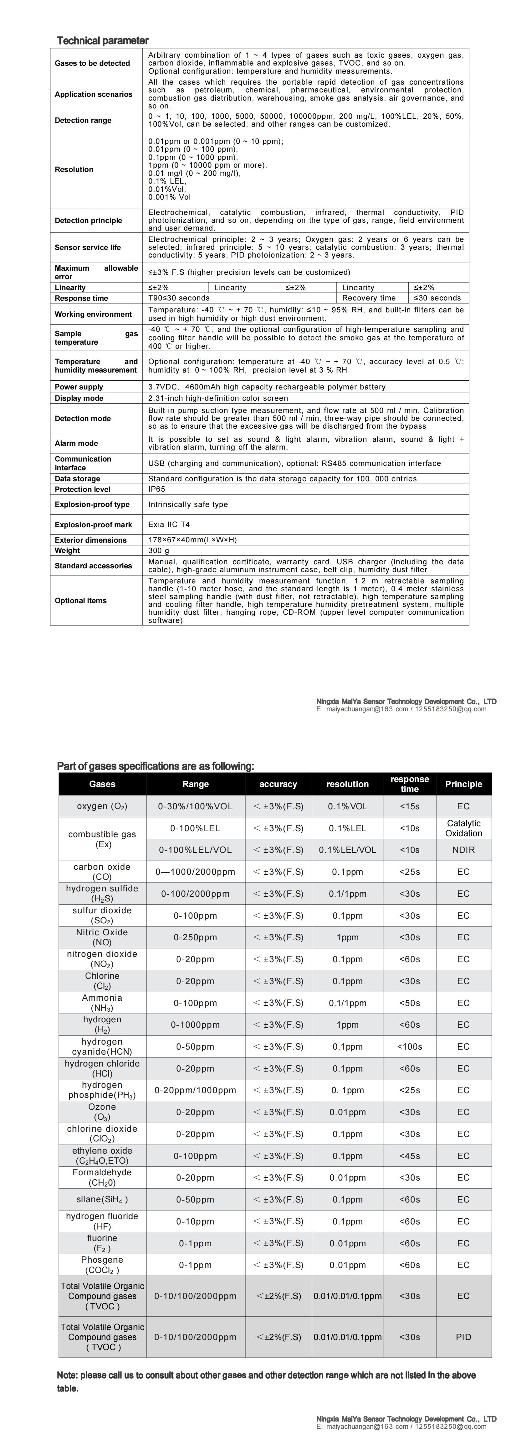 MST 420P portable gas detector can be used in: rapid detection of a variety of gas concentration and measurement of environmental temperature and humidity, if the measurement exceeded the limit value, the alarm will emit sound & light vibration as alarm. MST 420P adopted 2.31-inch high-definition color screen for real-time display, adopted the gas sensors of industrially well-known brands, and the main detection principles include: electrochemical, infrared, catalytic combustion, thermal conductivity, PID photoionization, and so on. Advanced electric circuit design, mature kernel algorithm processing, unique external appearance design, had achieved a number of patents about the software works, external appearance, and so on. MST 420P is suitable for detecting the concentrations of gases in the atmosphere environment in the pipeline or confined space; and the purity of the gas leakage and various high concentration single gases with the background gas as nitrogen gas or oxygen gas. The types of gases for detection are more than 500 types.