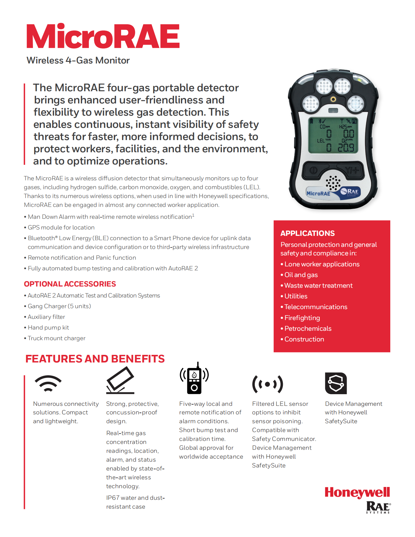 The MicroRAE four-gas portable detector brings enhanced user-friendliness and flexibility to wireless gas detection. This enables continuous, instant visibility of safety threats for faster, more informed decisions, to protect workers, facilities, and the environment, and to optimize operations.