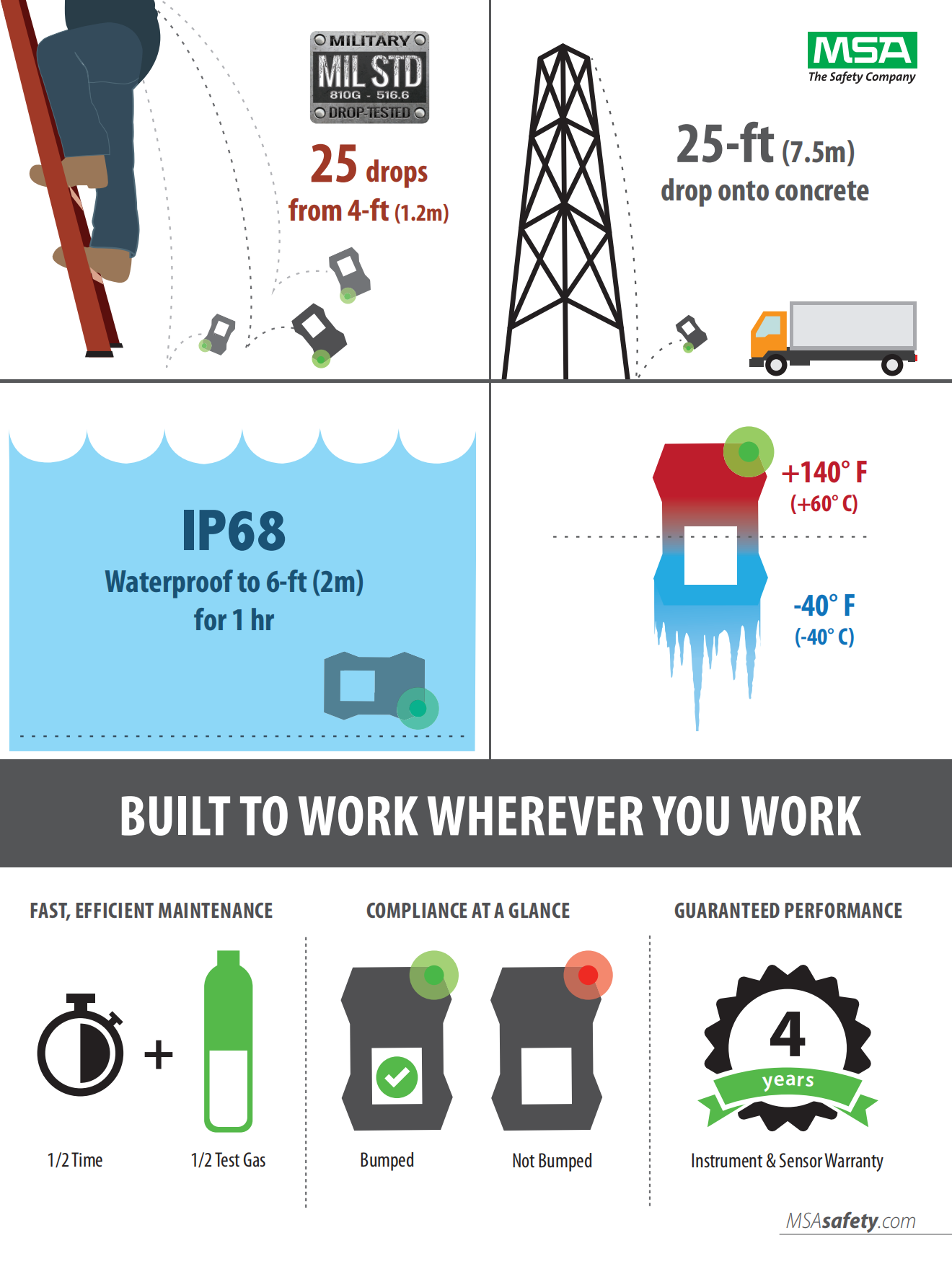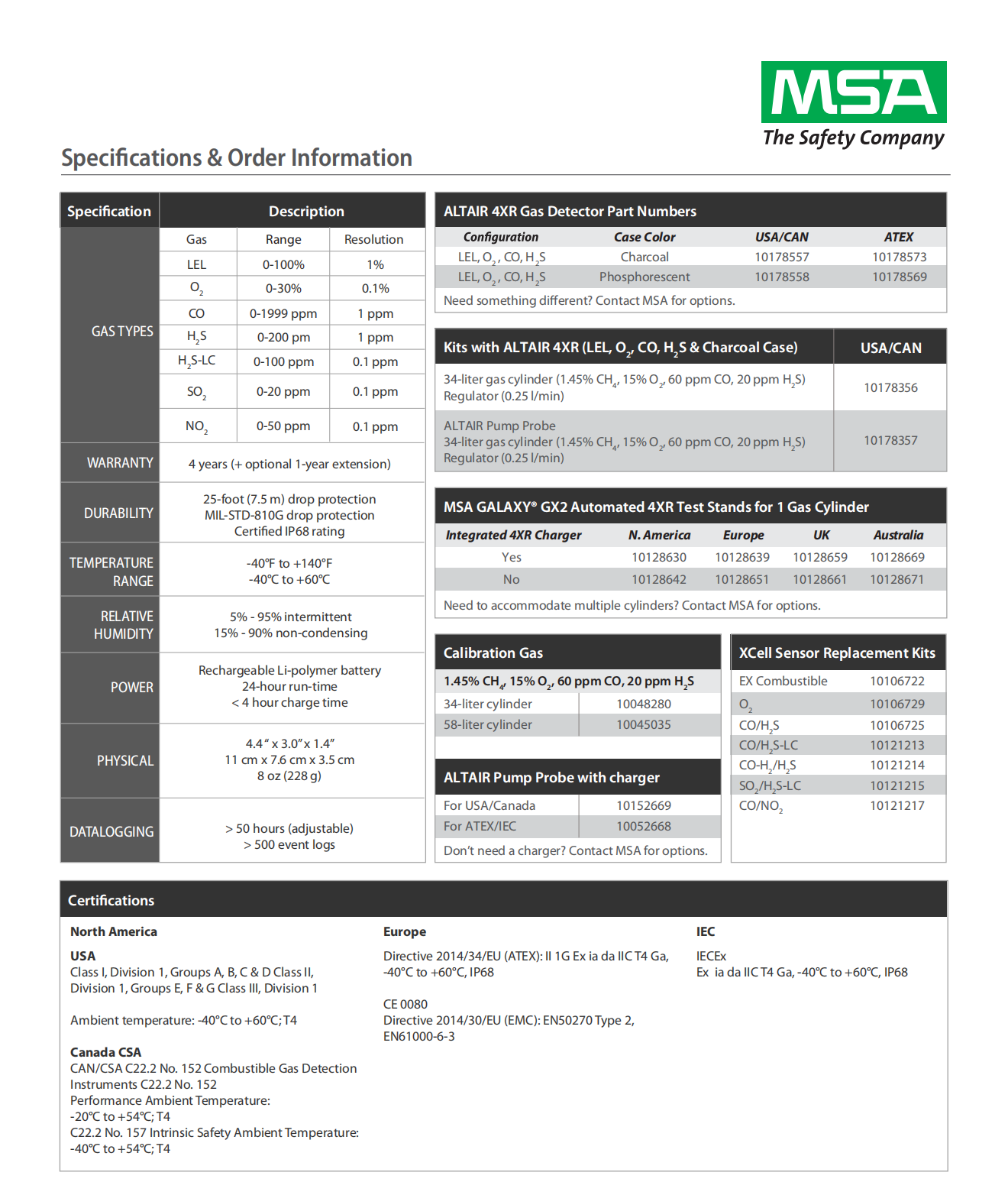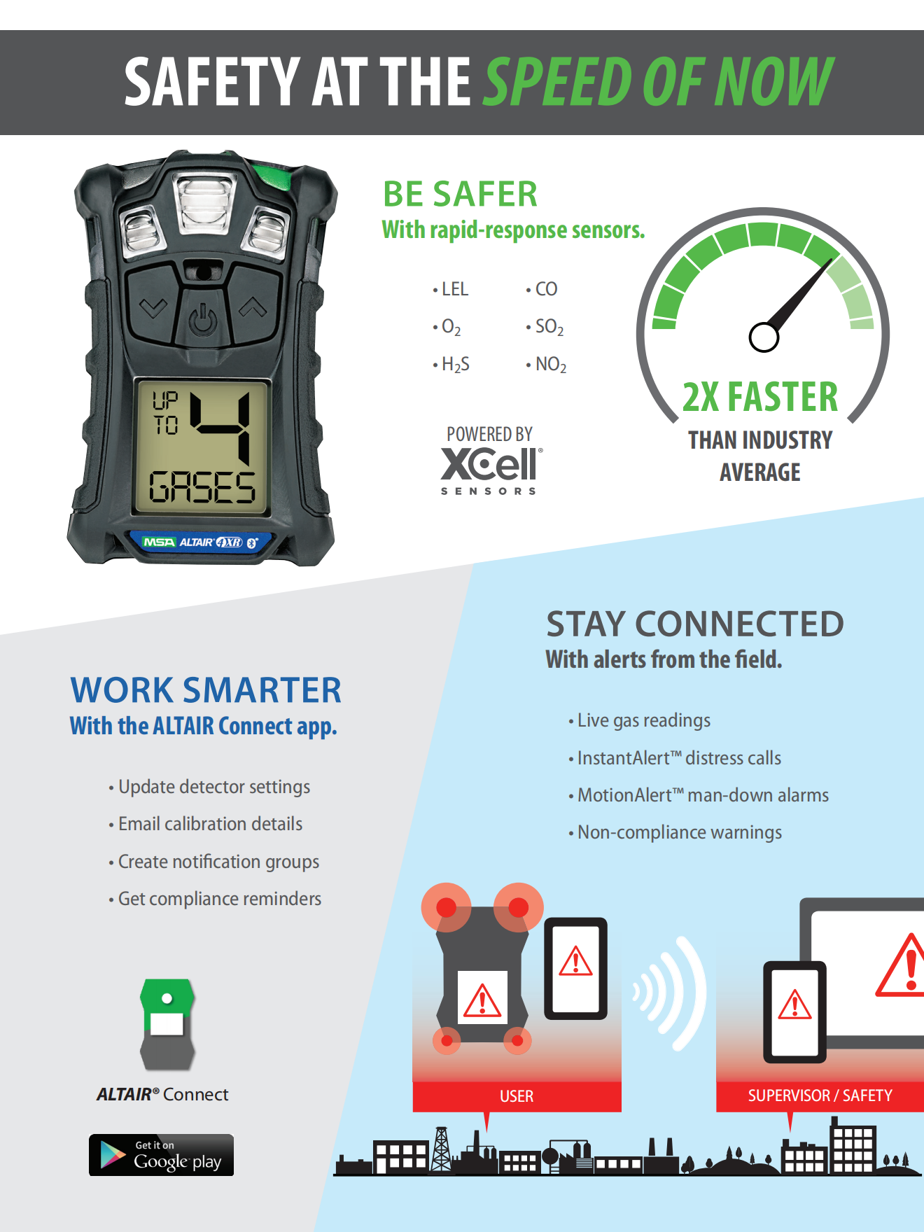 Outfitted with rapid-response MSA XCell? sensors, the ALTAIR 4XR Gas Detector is the toughest 4-gas monitor on the market and is backed by a 4-year warranty.