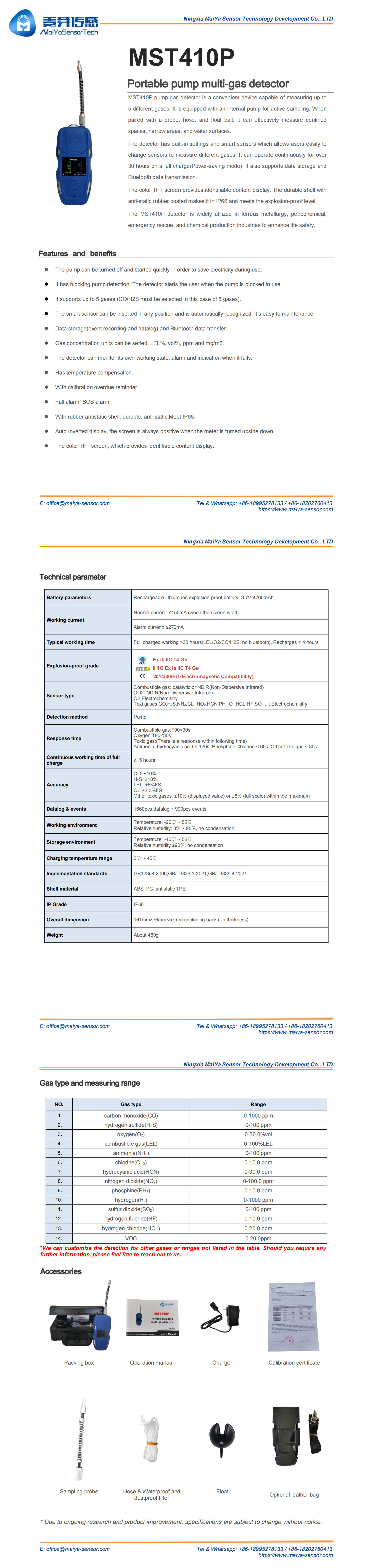 The portable pump multi-gas detector is a personal protection device that can continuously detect multi-gas concentration. The color TFT display displays the realtime measured concentration values and other information. High decibel buzzers, alarm lights and vibrations can alert that the current gas concentration has exceeded the threshold point. The detector uses smart sensors, which are easy to maintain. It has built-in program to reach many functions. The detector has data storage and Bluetooth data transfer for optional. The gas detector is widely used in ferrous metallurgy, petrochemical, emergency rescue, chemical production to improve life safety.