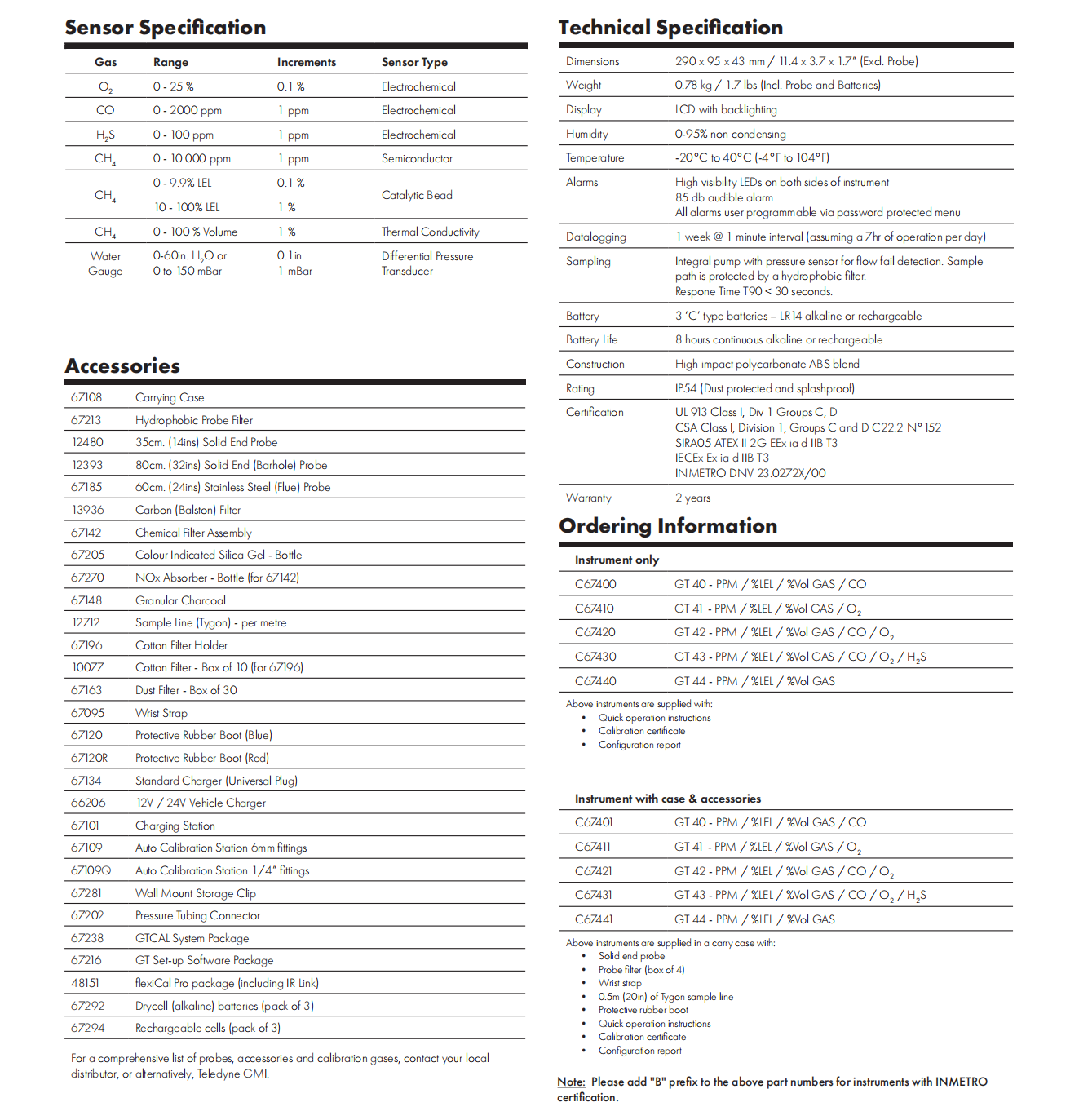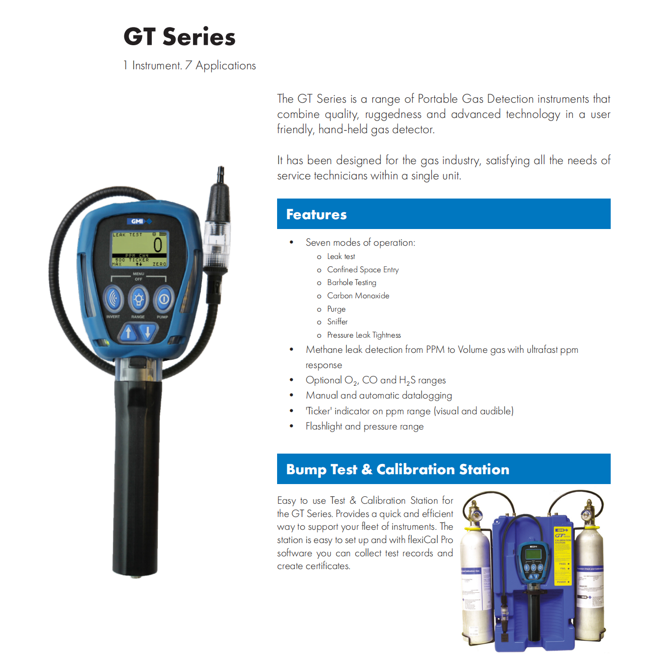 The GT Series is a range of Portable Gas Detection instruments that combine quality, ruggedness and advanced technology in a user friendly, hand-held gas detector. It has been designed for the gas industry, satisfying all the needs of service technicians within a single unit.